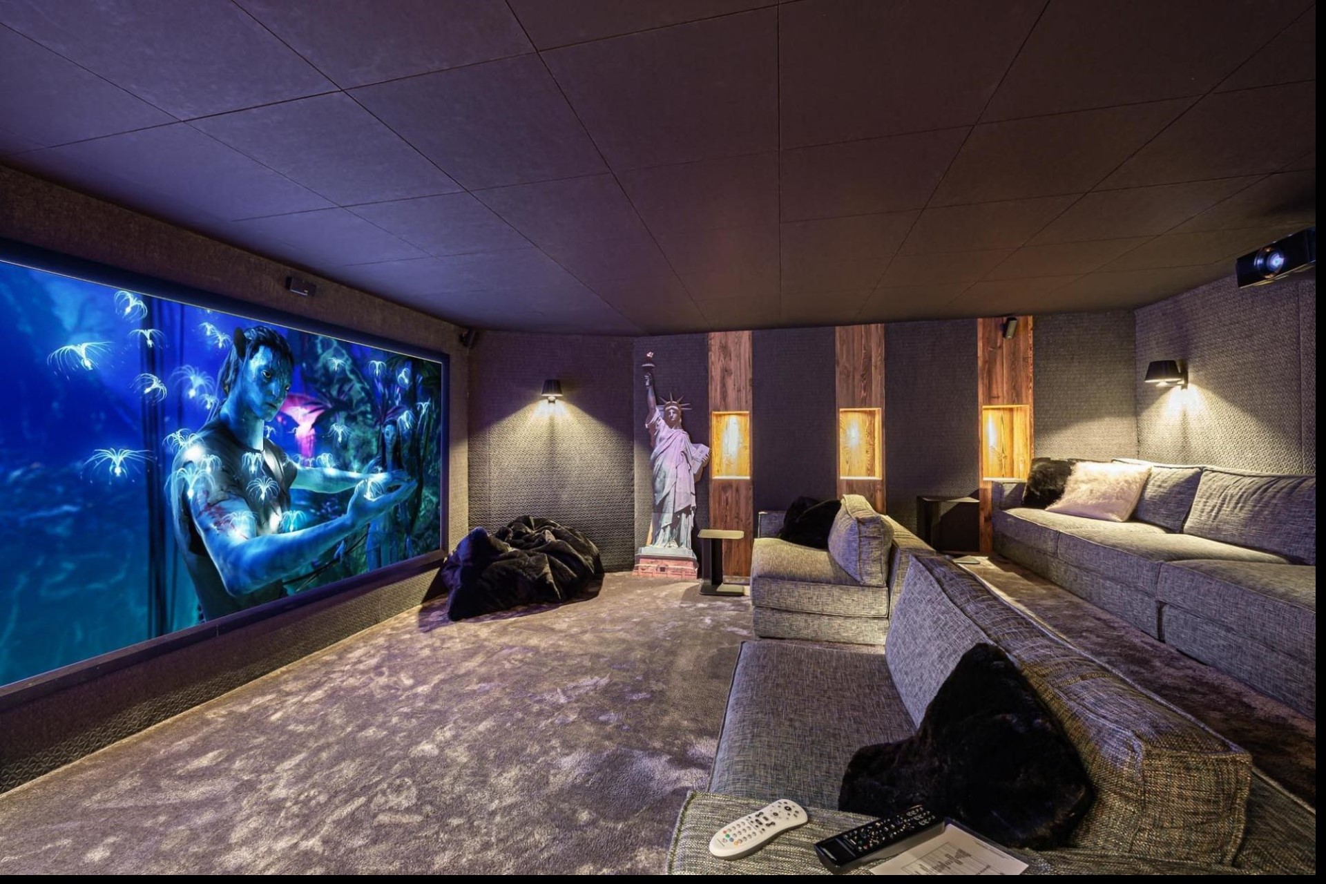The chalet’s interiors artfully blend traditional elements like wood panelling with polished contemporary design. The main living area features an open fireplace, inviting lounge and dining areas, and a sleek, fully equipped kitchen. A cinema room, bar, wine cellar and cosy library offer a change of pace for relaxed evenings.