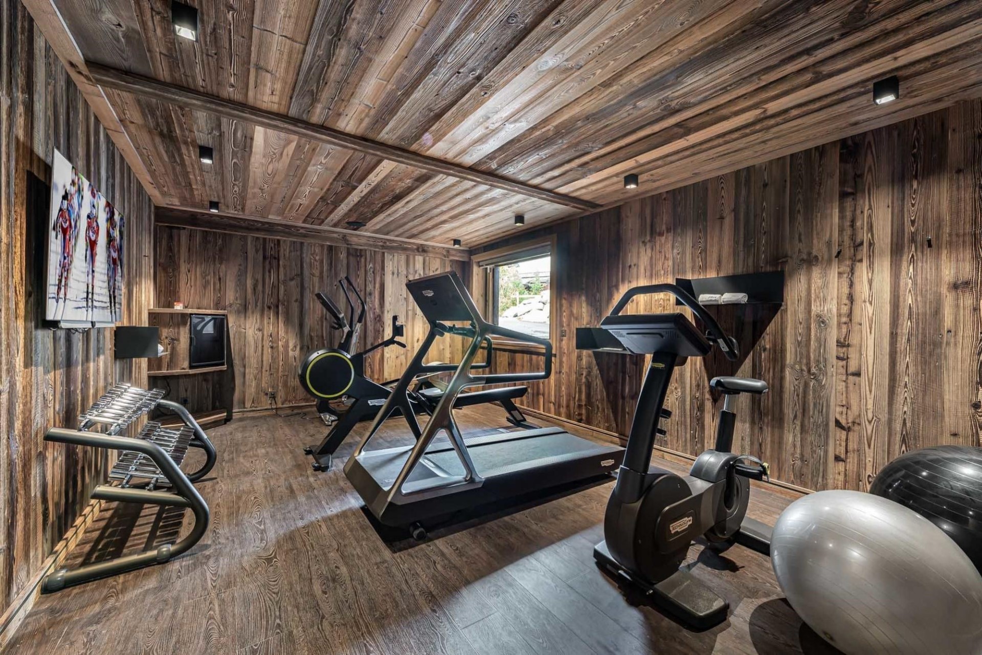 The chalet’s standout feature is its spa — a comprehensive wellness area perfect for unwinding after a day on the slopes. Guests can relax in the heated indoor pool, brave a cold plunge, or breathe deep in the sauna or hammam. There’s also a Jacuzzi, a dedicated treatment room, a private hair salon, and a tea room for relaxed moments of calm and serenity. Moreover, there is a well-equipped gym for active guests to enjoy.