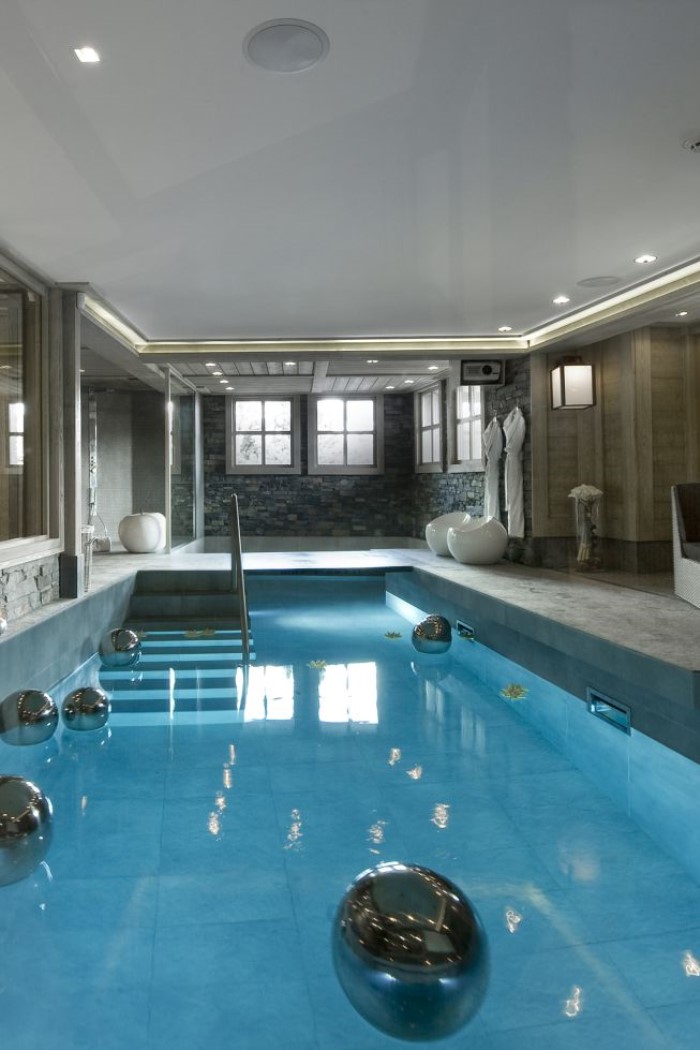 The ground floor of the chalet is dedicated to wellness and pampering, perfect for relaxing after a long day on the slopes. It features a heated indoor swimming pool with counter-current jets and massage waterfalls, as well as a sauna and a massage cabin. There’s also a poolside relaxation area, as well as a large cinema screen for enjoying a film with friends and family.