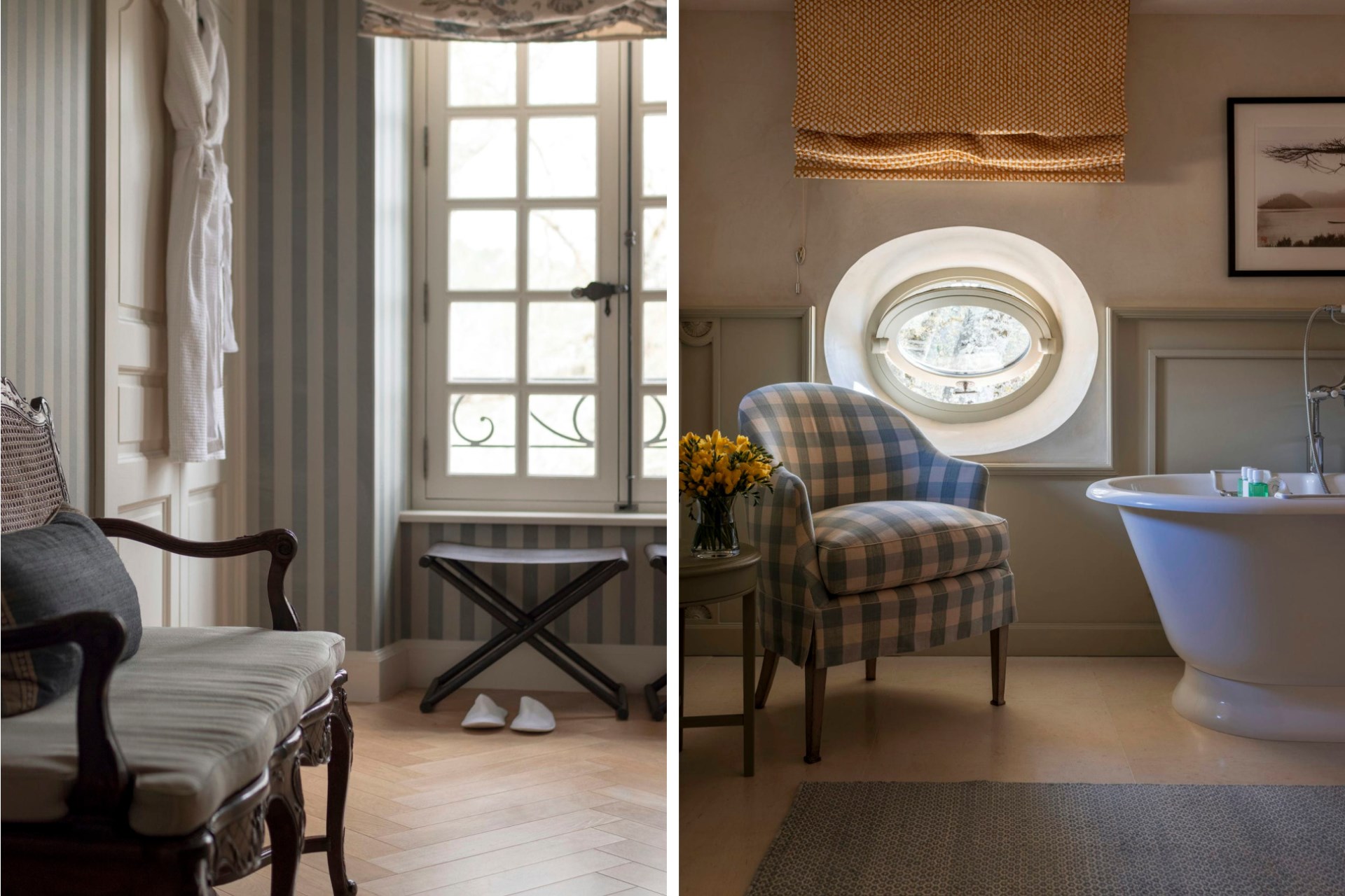 The 18 guest bedrooms are housed across four buildings – the Bastide, the Moulin guest house, the Bergerie, and the Observatory apartment. Each bedroom features a sitting area with a wood-burning fireplace, top entertainment centres, original artwork, and an en-suite marble bathroom. All bedrooms boast stunning views of the surrounding forests and vineyards, with some also featuring private terraces.
