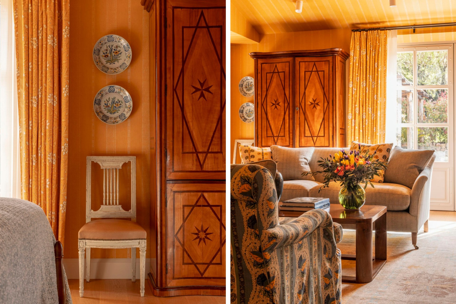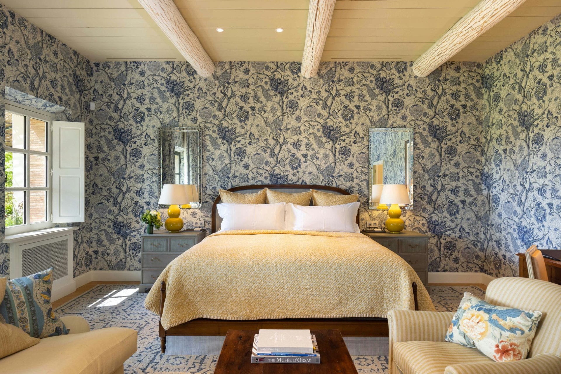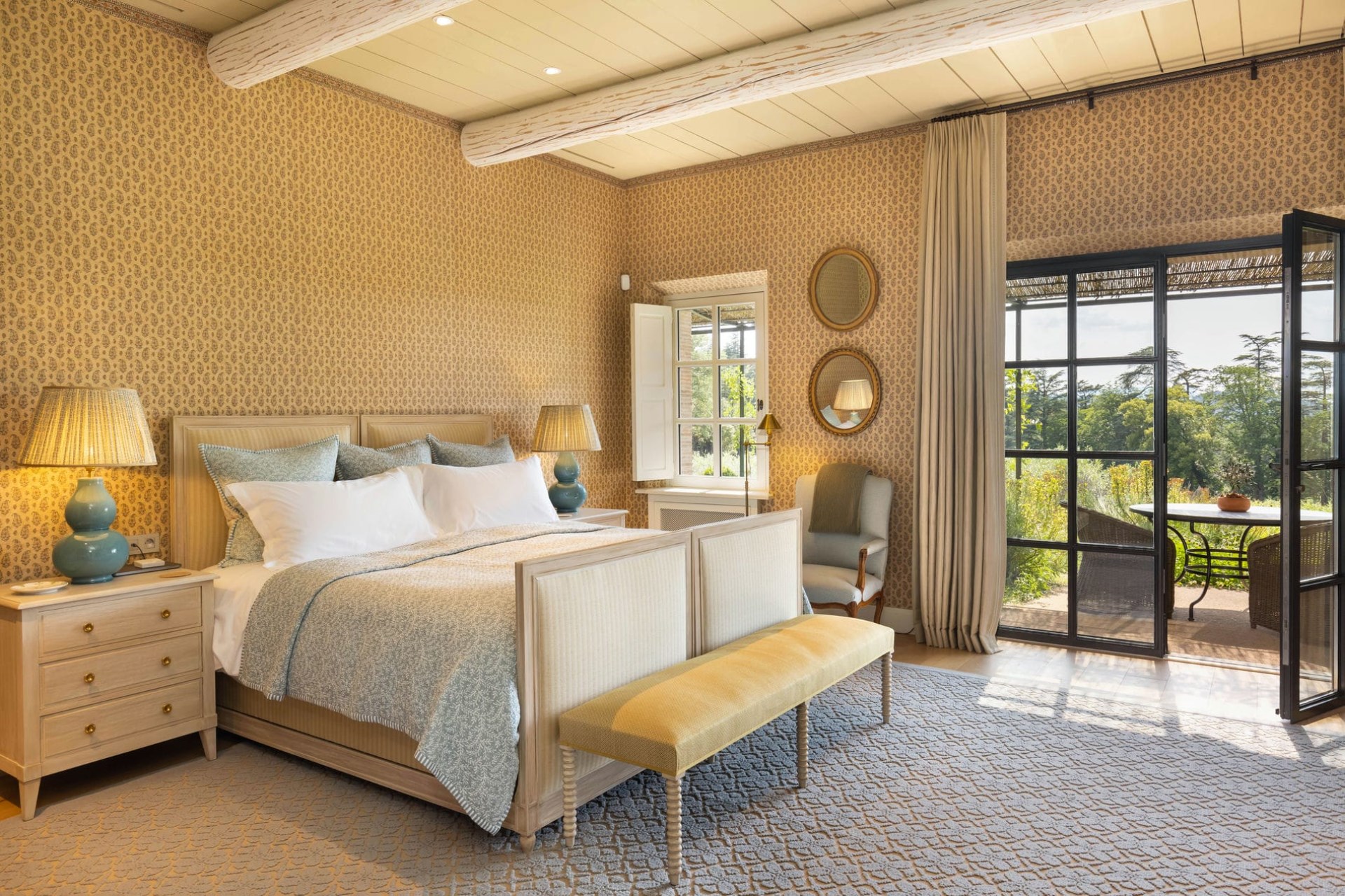 Guests are welcomed into the Bastide via large wooden doors leading to a beautiful entrance hall with a grand piano. There is a comfortable sitting room (which connects to the property’s chapel) and a cosy library, well-stocked with titles from all over the world. Delicious meals are served in the elegant dining room, plus there’s an informal breakfast room.
