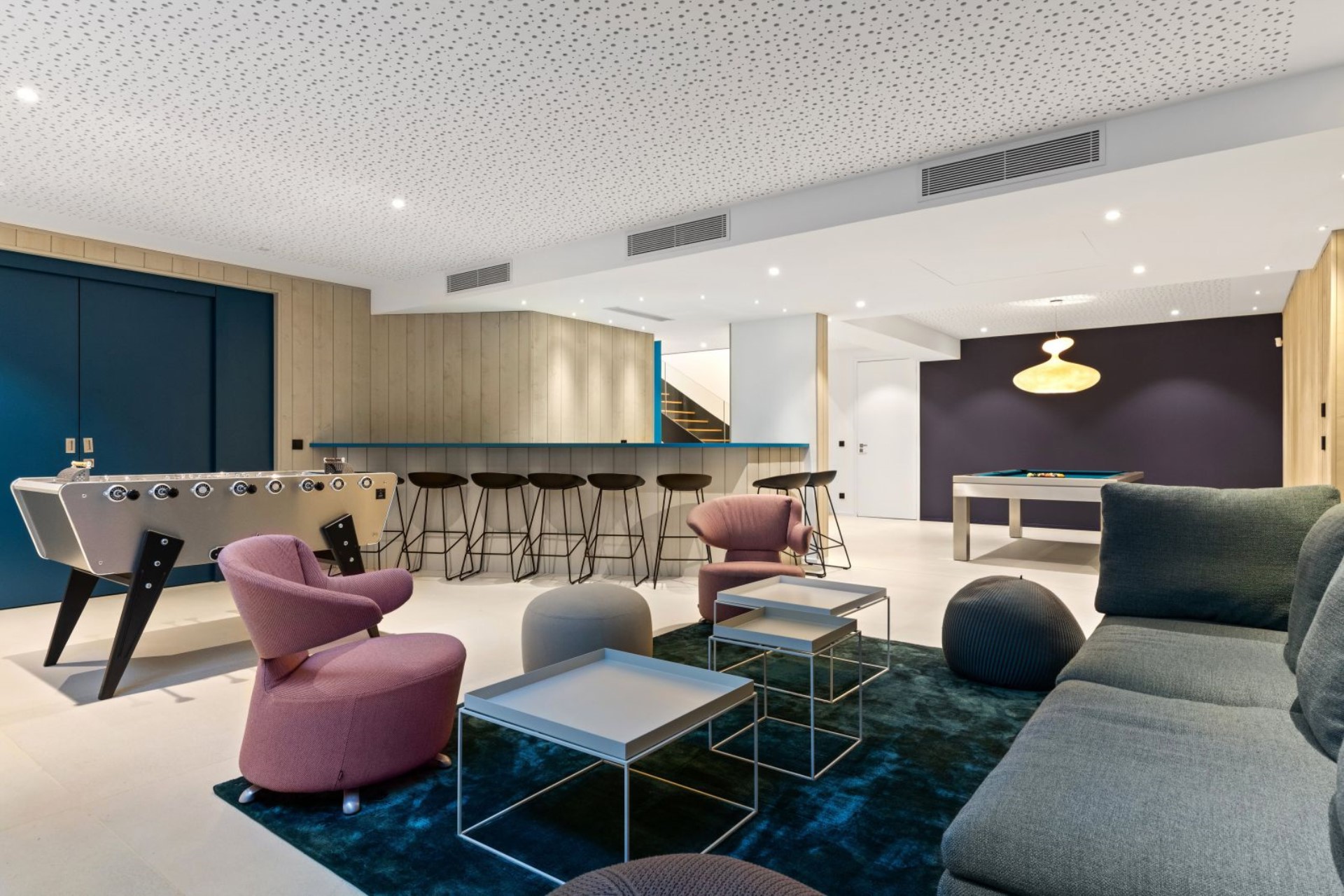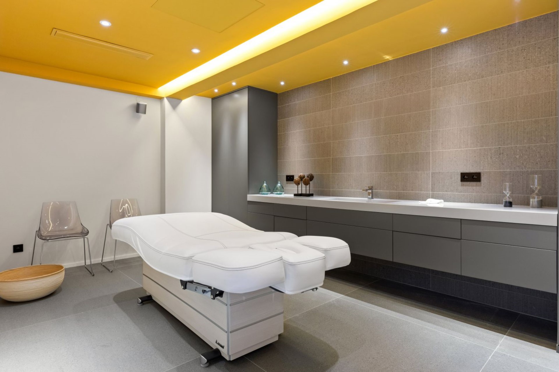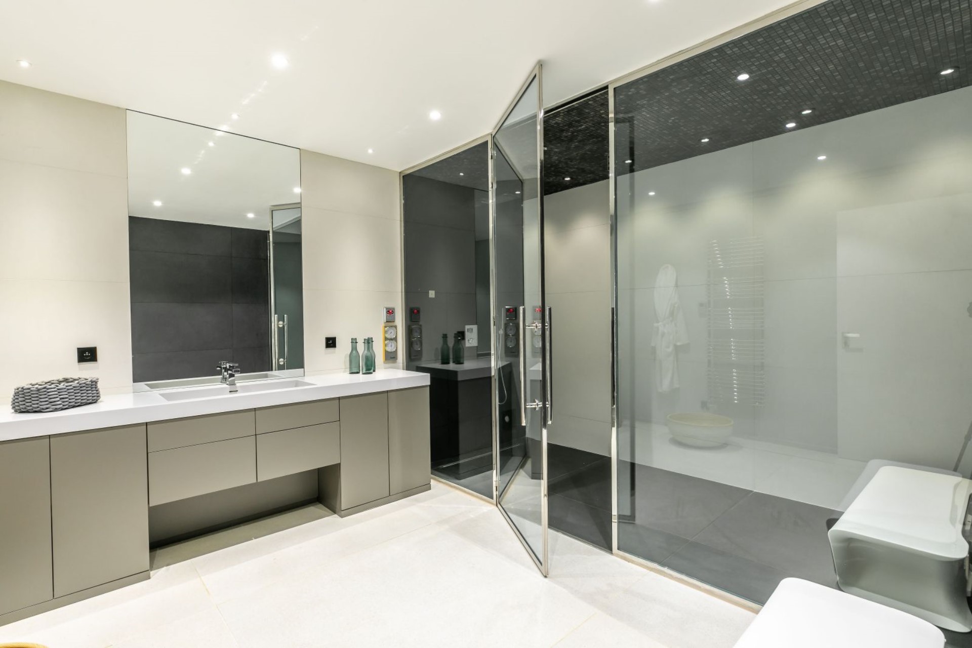 A basement floor connects all three villas and is dedicated to relaxation and entertainment. Guests can work out in the fully-equipped gym before relaxing in the spa area, which features a hammam, a massage room, and a herbal tea room. There is also a cinema room, and a games room with a bar, pool table, and table football to keep all ages entertained.