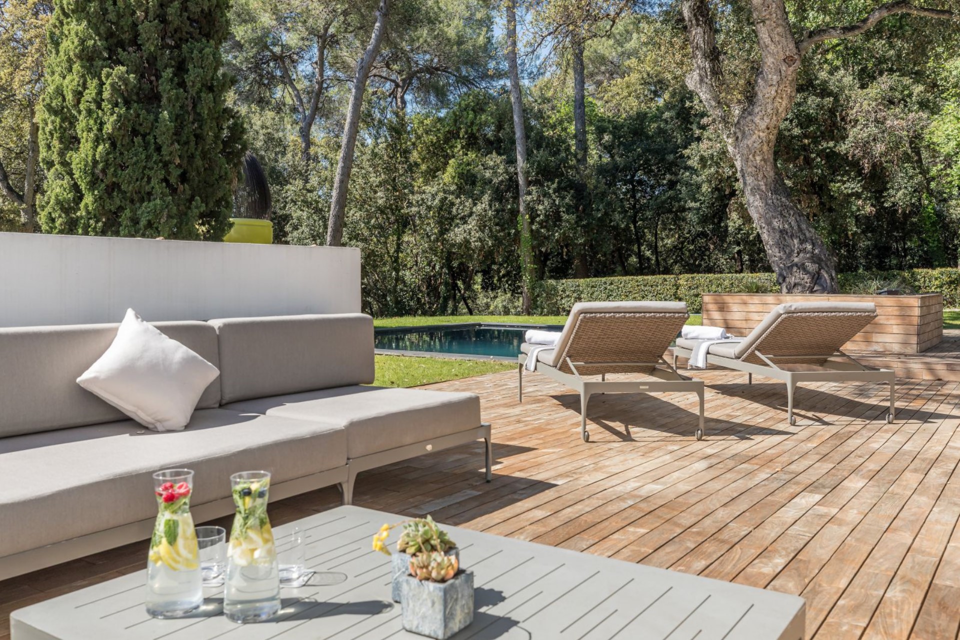With its three separate villas, vast outdoor living spaces, and serene surroundings, Domaine des Artistes is the ideal location for a luxurious getaway with loved ones on the beautiful French Riviera.