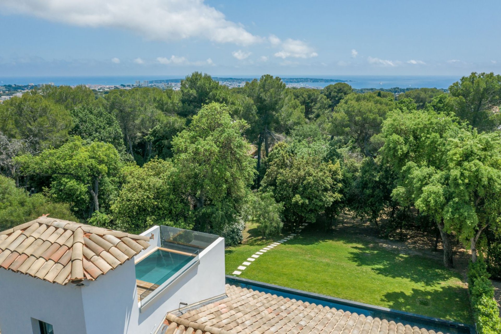 Set over 1.5 hectares in a hilltop location, the property boasts spectacular sea views on one side and the Alps on the other. Nestled in the heart of a listed woodland park, guests enjoy the privacy, peace and tranquility offered by its natural surroundings.