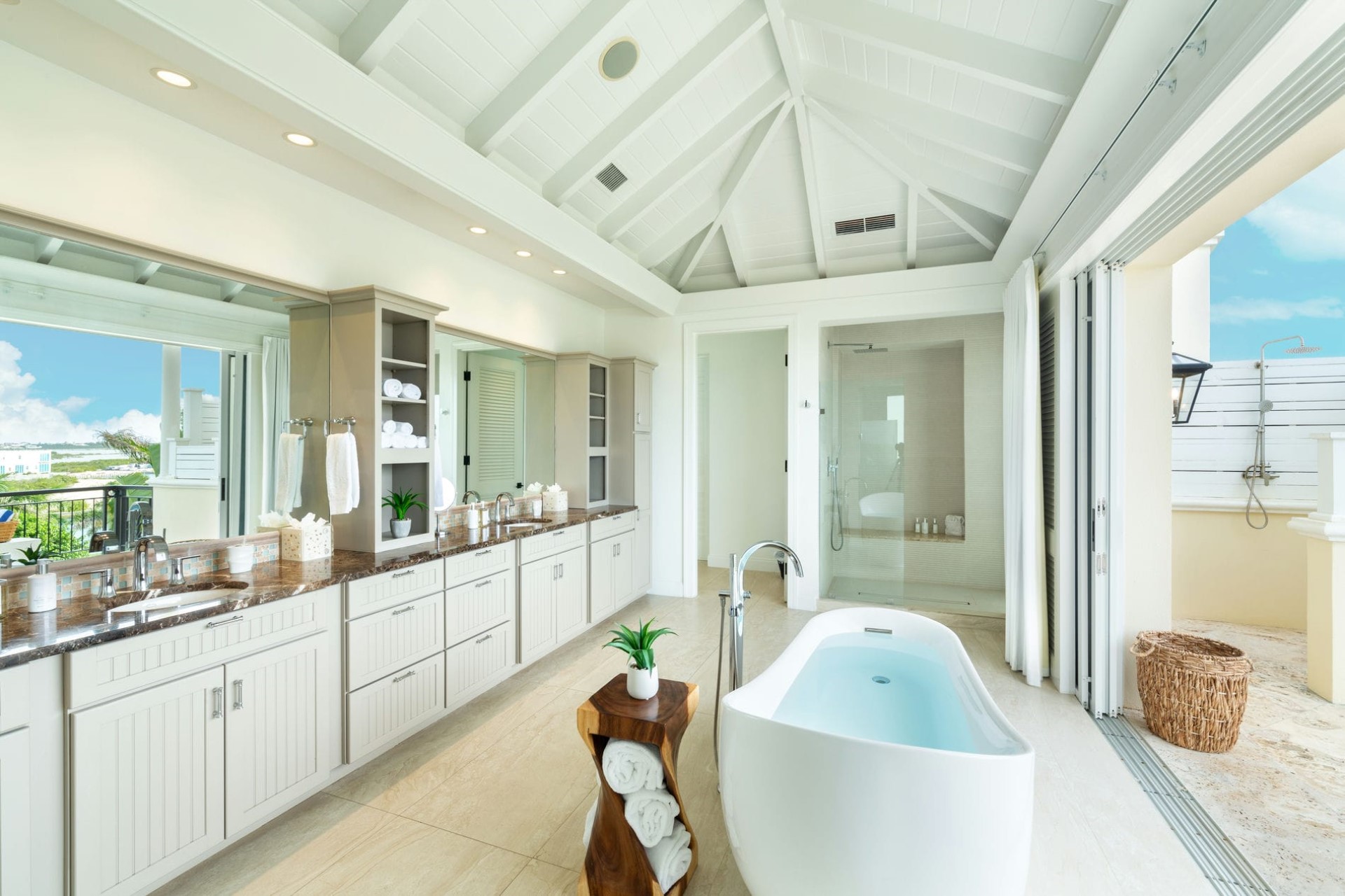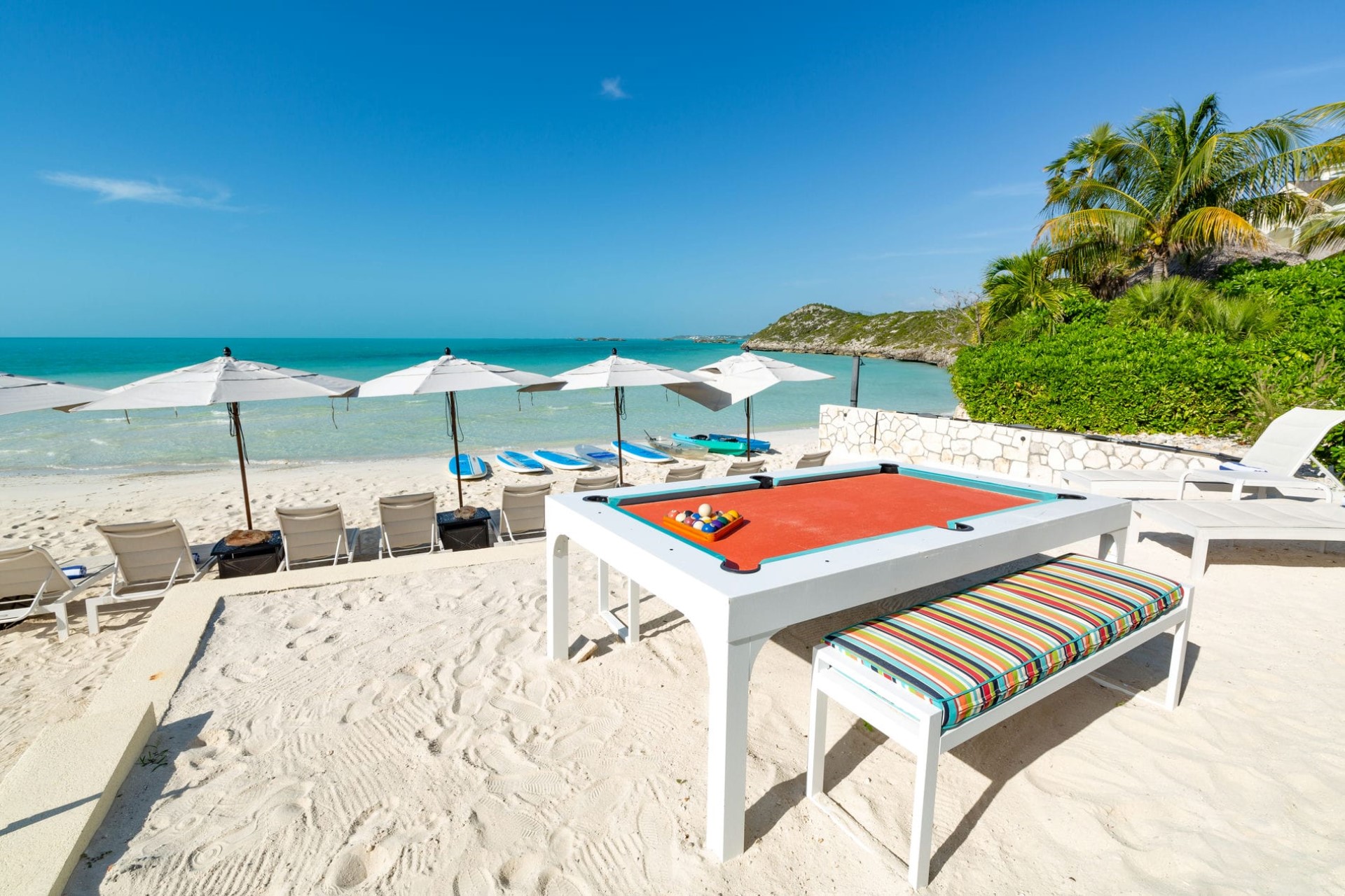The estate features direct access to the surrounding turquoise waters with a private white-sand beach and a marina. However, the renowned Grace Bay and Long Bay beaches are just a short drive or boat ride away. Grace Bay’s calm, clear waters are perfect for snorkelling, paddleboarding, and parasailing, while Long Bay is perfect for horse riding through the shallows.