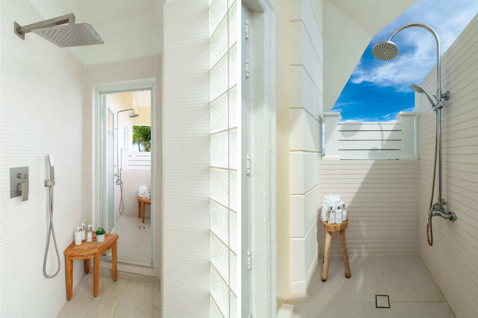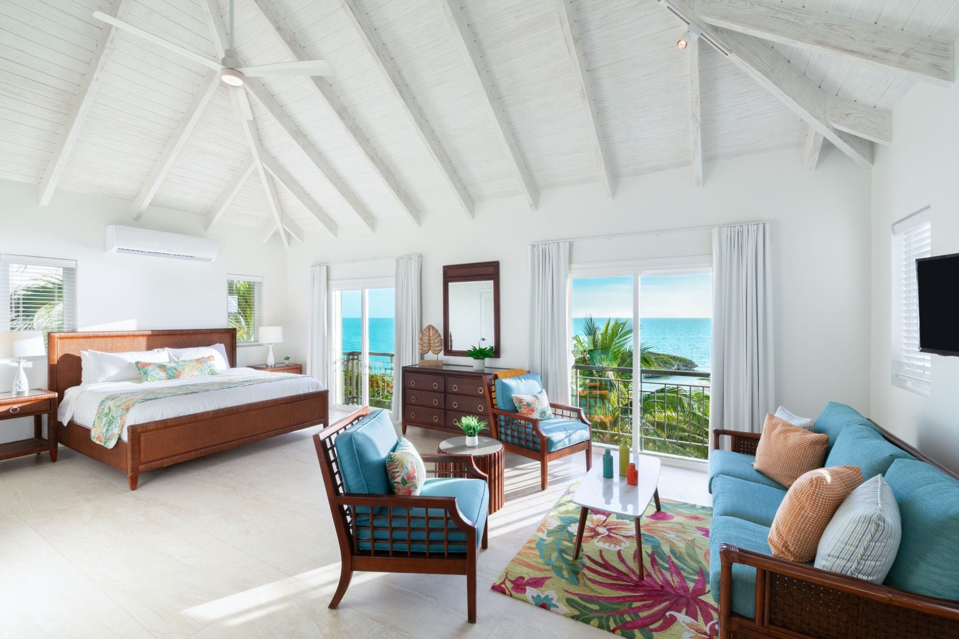 Let’s Go Crazy – king-size bed, sitting area, en-suite bathroom with dual vanity & shower + outdoor shower, and private terrace with ocean views