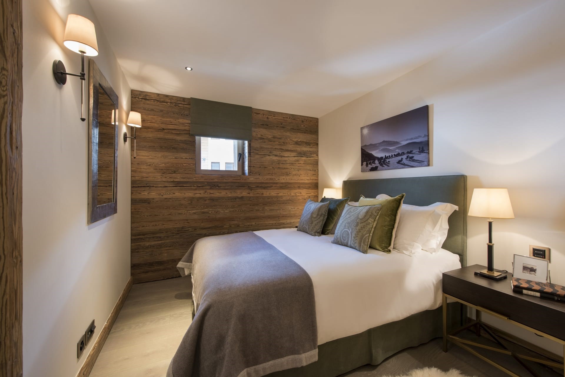 The penthouse accommodates up to 10 guests in five luxurious bedrooms. The master suite on the second floor serves as a private sanctuary, complete with a balcony and an opulent en-suite bathroom, where guests can soak in the tub while enjoying a view of the jagged peaks. The remaining four bedrooms are situated on the first floor, with three featuring en-suite bathrooms, and all providing access to the terrace.