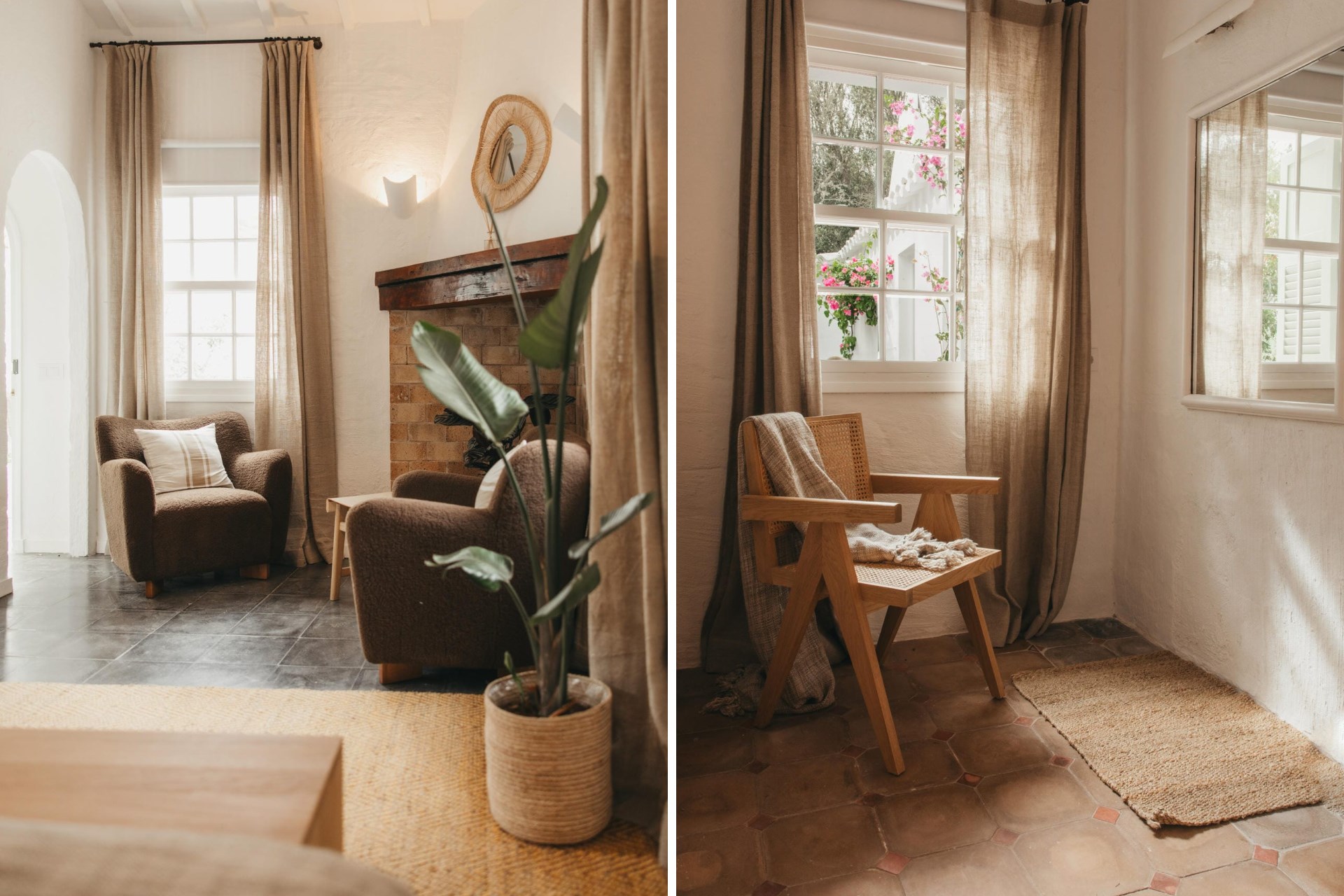 First constructed in 1857, the finca itself has been artfully restored and transformed into luxurious accommodation. Thick stone walls insulate the home, creating a quiet, serene living environment. Carefully preserved original features such as exposed wooden beams, vaulted ceilings, and stone archways add historic charm, while brightly coloured soft furnishings, vibrant Spanish tiles, and eclectic antiques create a modern yet homely feel.