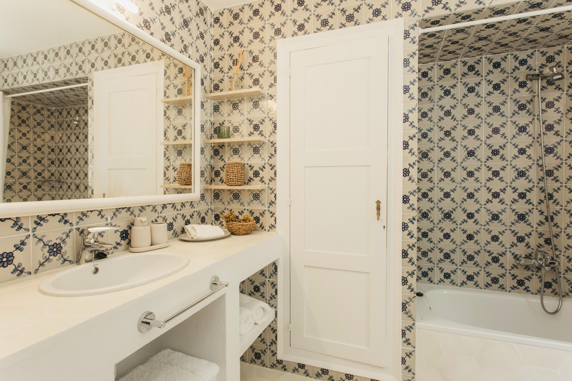 Sa Ovella – double bed and en-suite bathroom with bathtub/shower