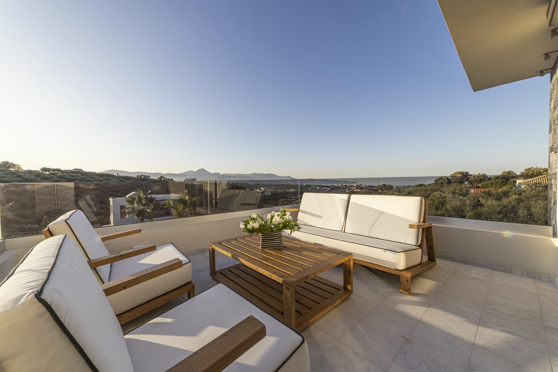 Set in peaceful countryside just outside Heraklion on the island of Crete, Geolivia Estate offers the rare combination of privacy, space and luxury across two villas – Erotokritos and Aretousa – with shared grounds. Surrounded by olive trees and Mediterranean greenery, the estate features landscaped gardens and stunning sea and mountain views.