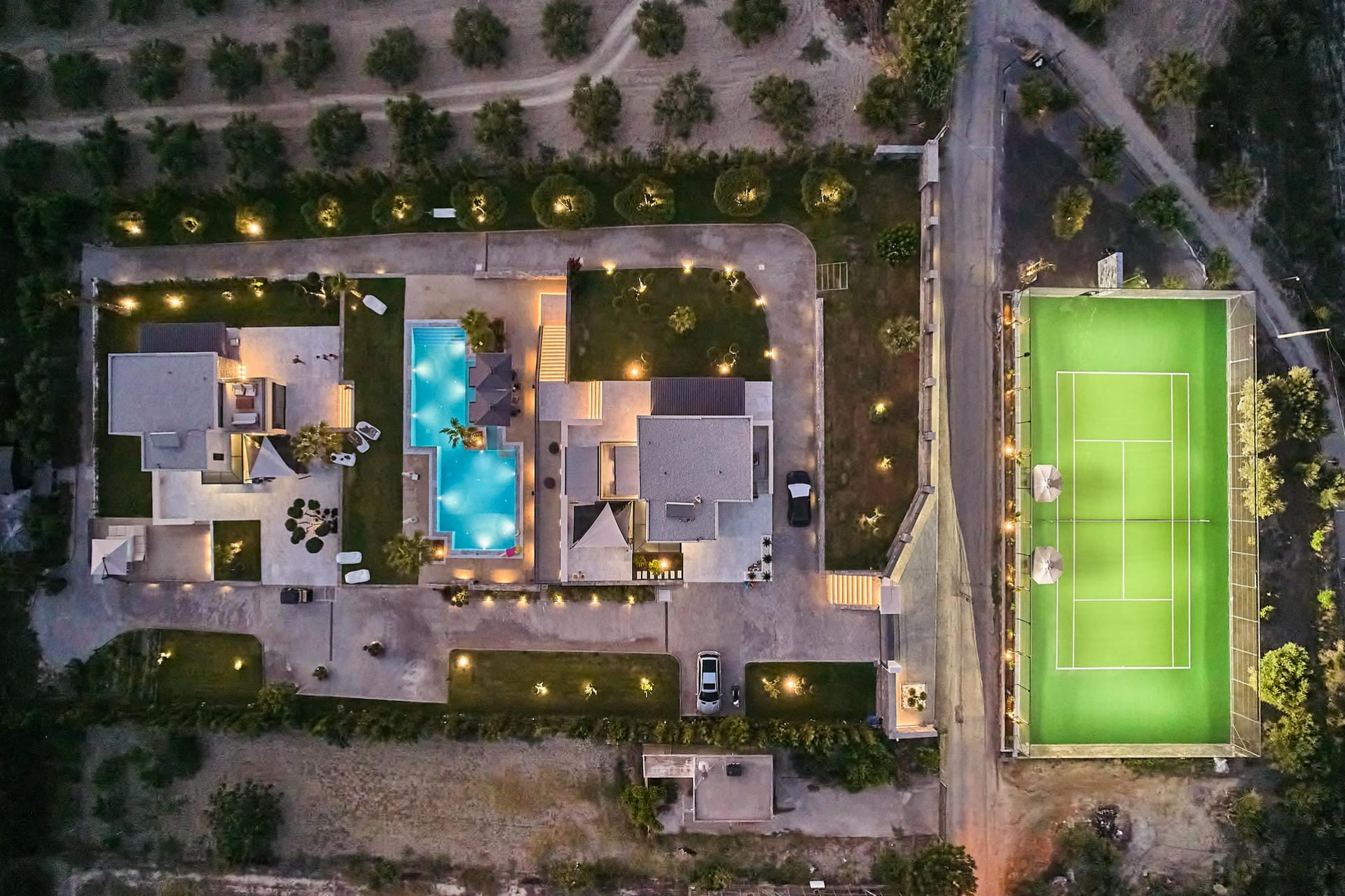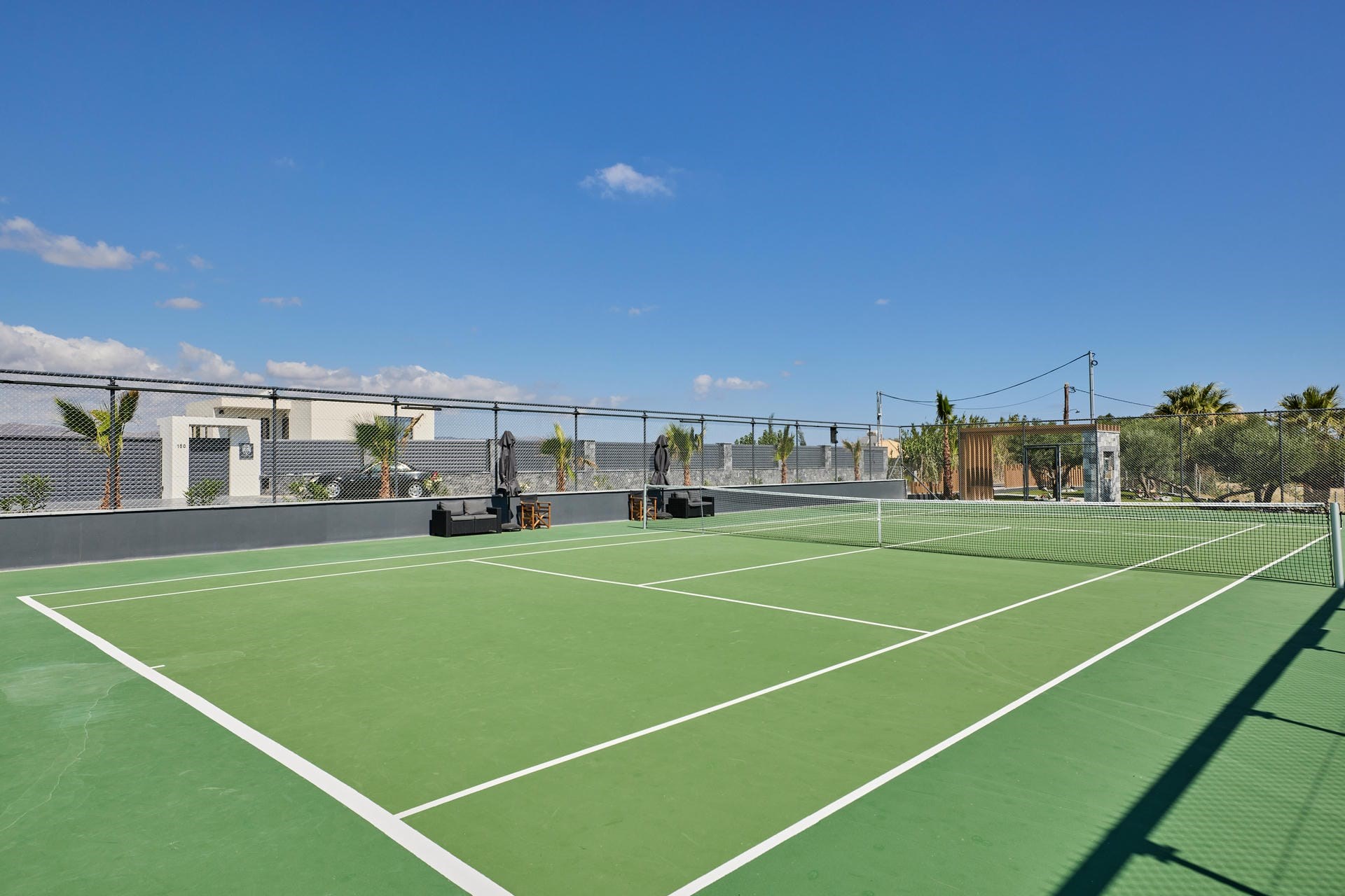 Another highlight of the villa is its private, floodlit tennis court. This acrylic-topped hard court meets the rigorous standards set by the Association of Tennis Professionals (ATP), ensuring a great game for all, whether amateur or pro.