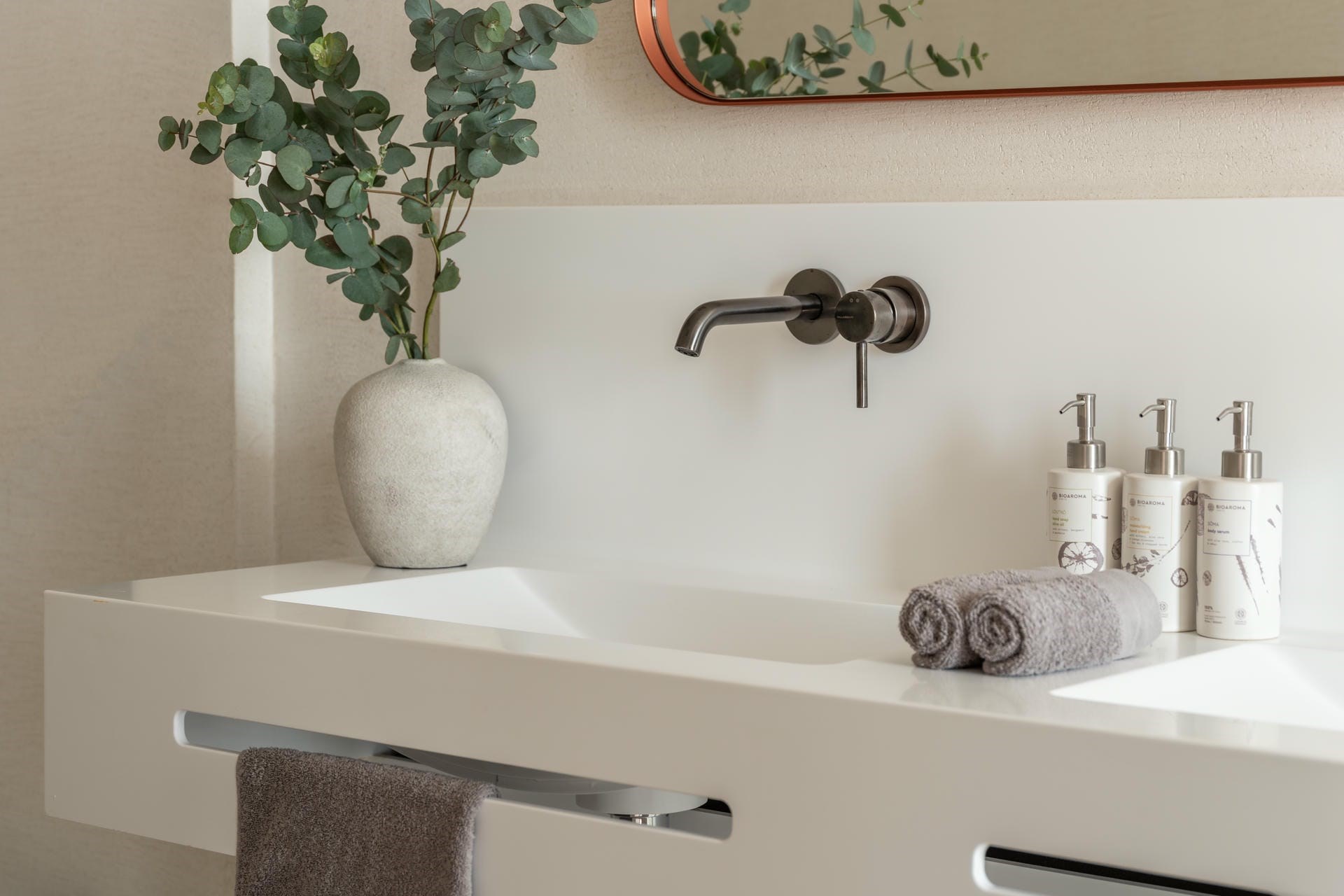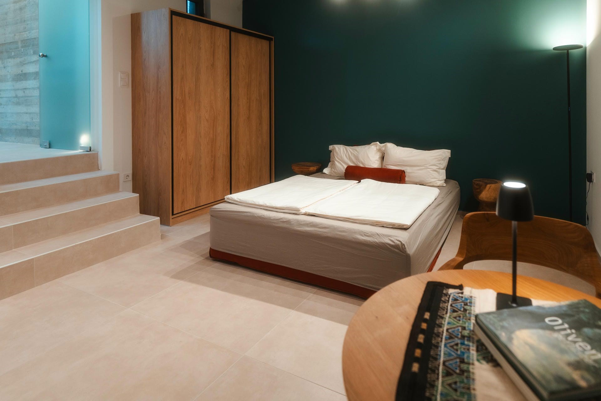 The villa accommodates eight guests in four luxurious en-suite bedrooms. Additionally, up to four extra guests can be accommodated in convertible spaces – one on the lower-ground floor and another in the wellness area. These areas can be configured as bedrooms with double sofa beds. This flexible arrangement is perfect for families travelling with children, teenagers, or personal staff.