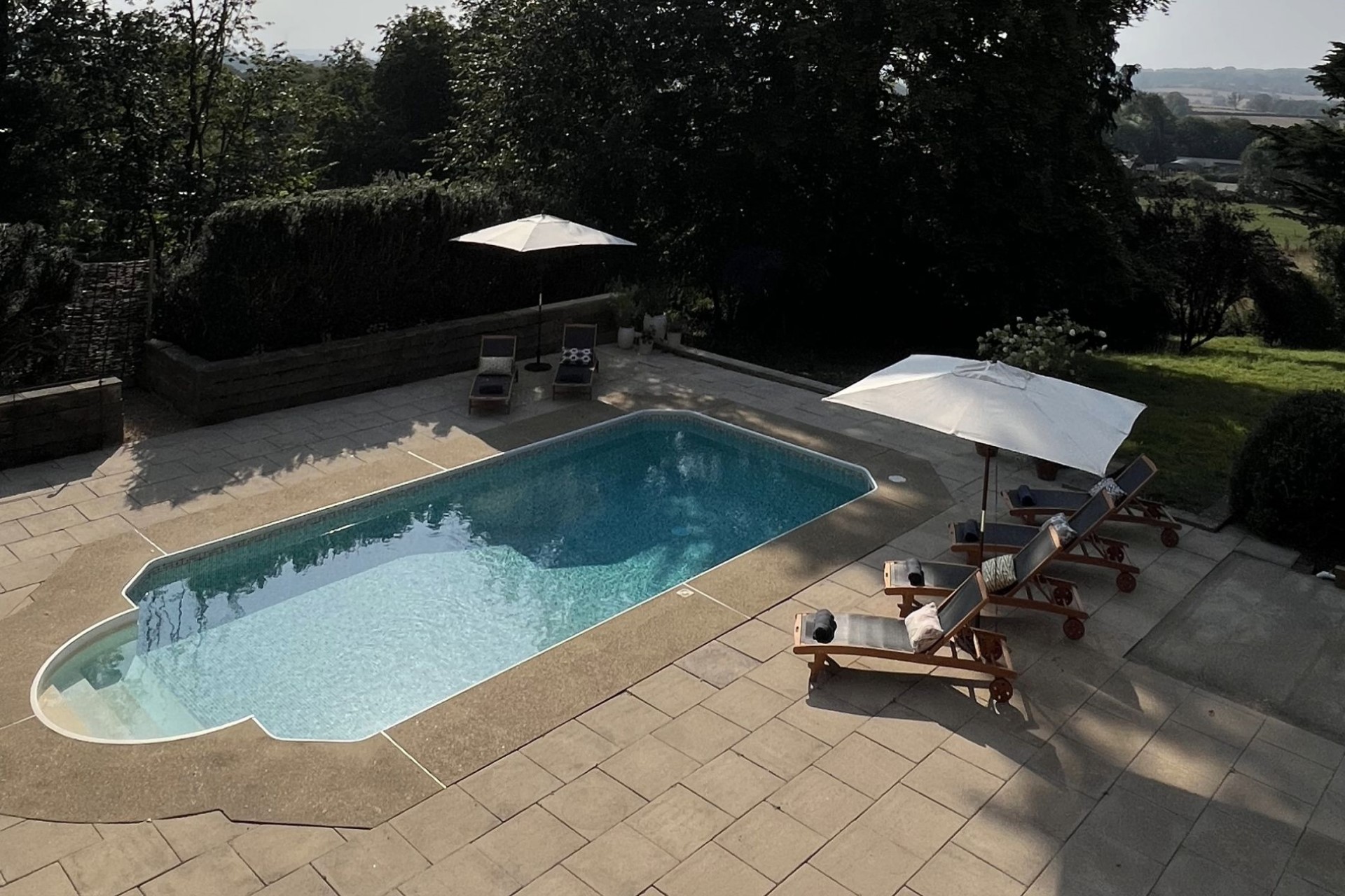 The remaining three bedrooms are in a separate apartment in the manor’s east wing. It comprises one king-size room and two doubles with a shared bathroom and private living room, ideal for those travelling with teens or personal staff.