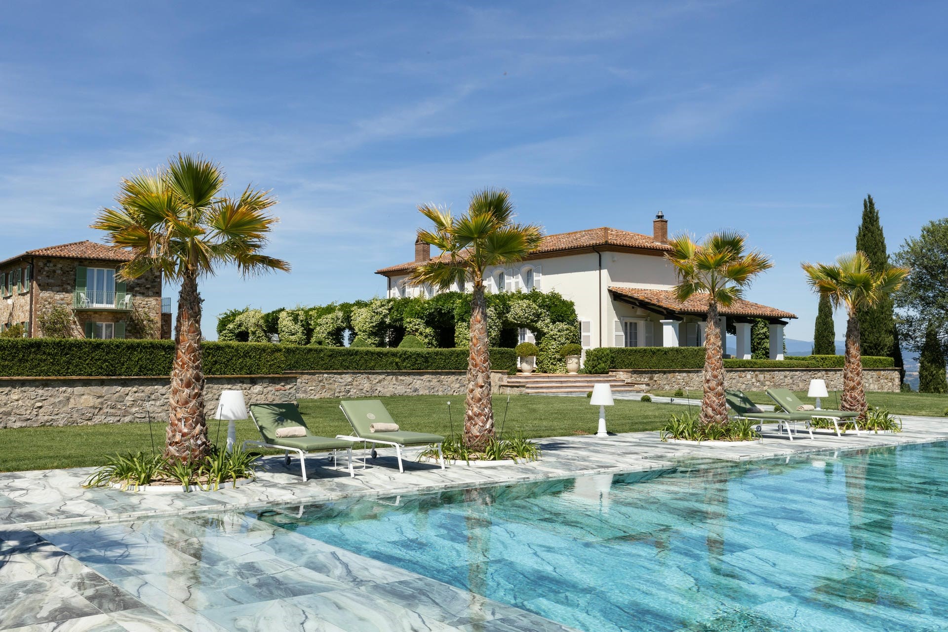 La Villa is a beautiful hilltop in the lush Umbrian countryside, overlooking sprawling vineyards and rolling hills. The property sleeps up to 12 guests within its main villa and neighbouring guest house.