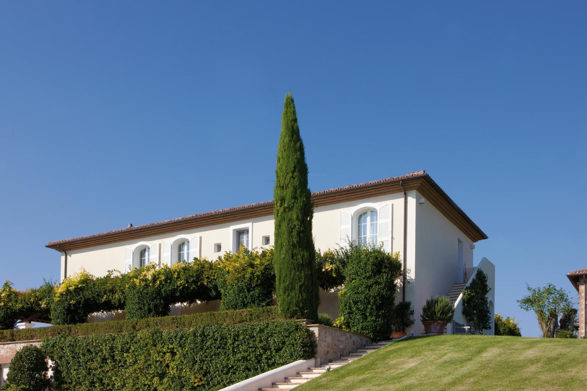 With over 50 hectares of land, there is plenty of space for relaxation and entertainment. A cypress-lined driveway immerses guests in the Umbrian atmosphere right from the start. Verdant lawns stretch past perfectly-manicured gardens, down to the neat rows of the vineyard.