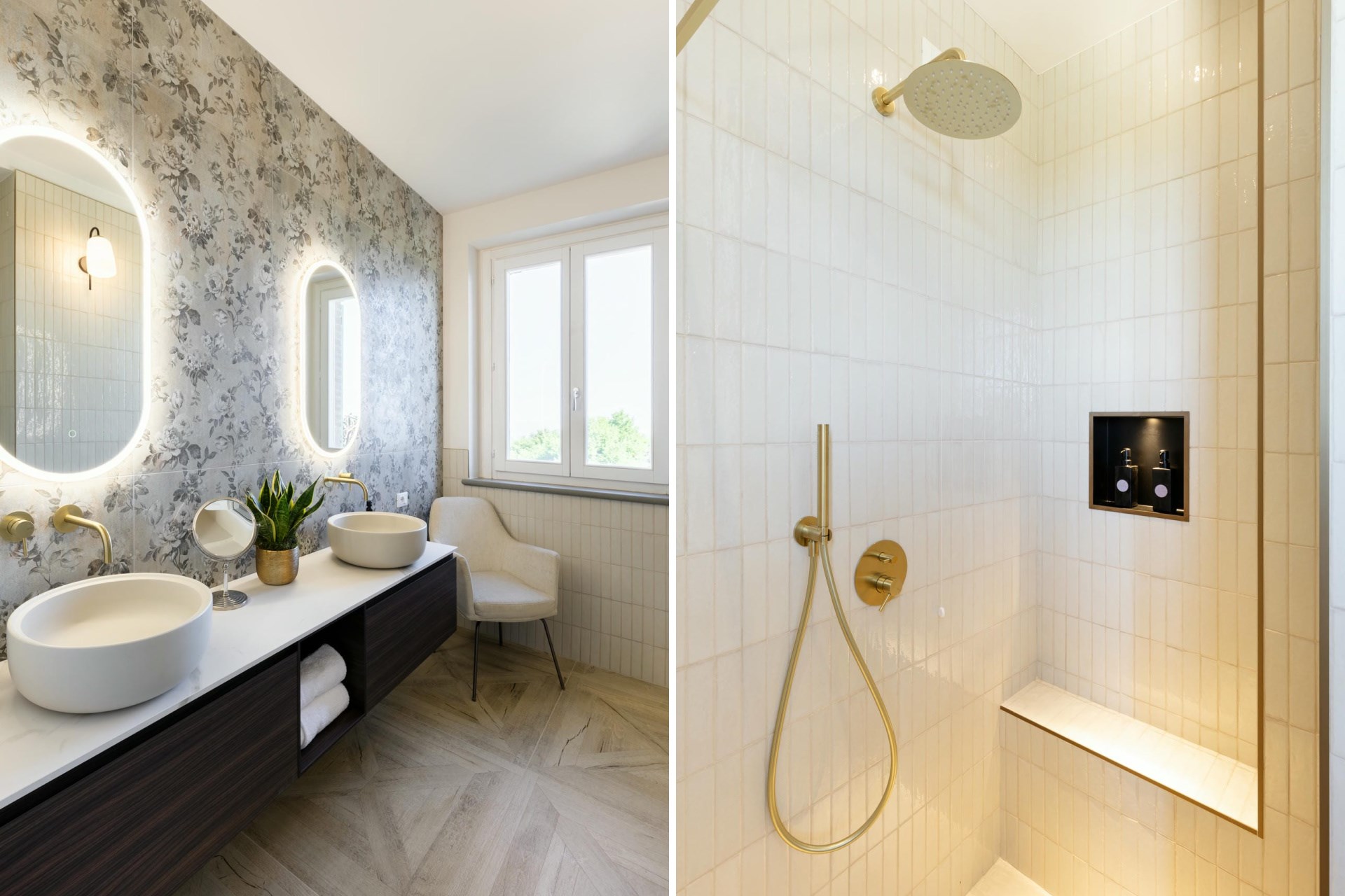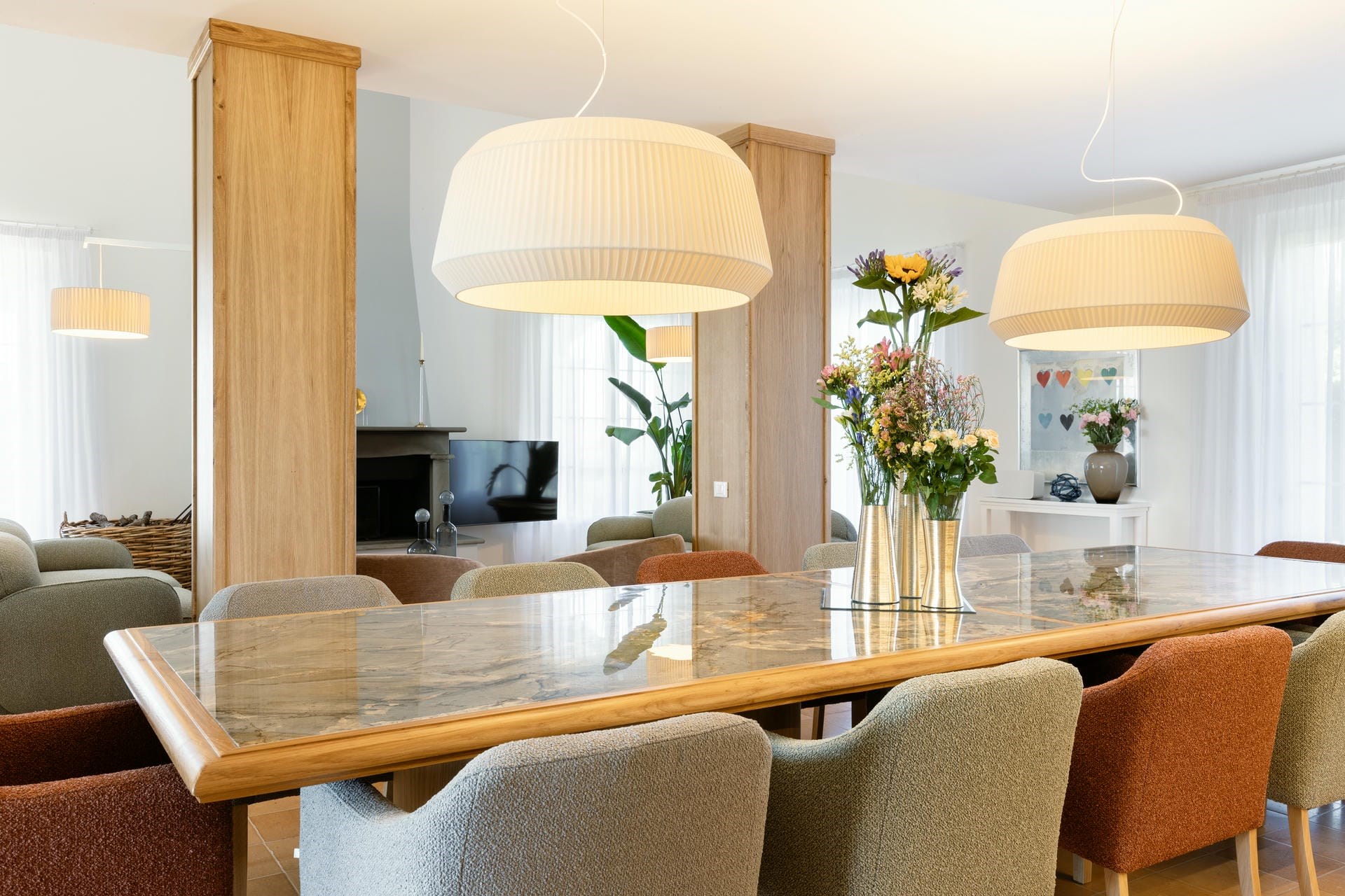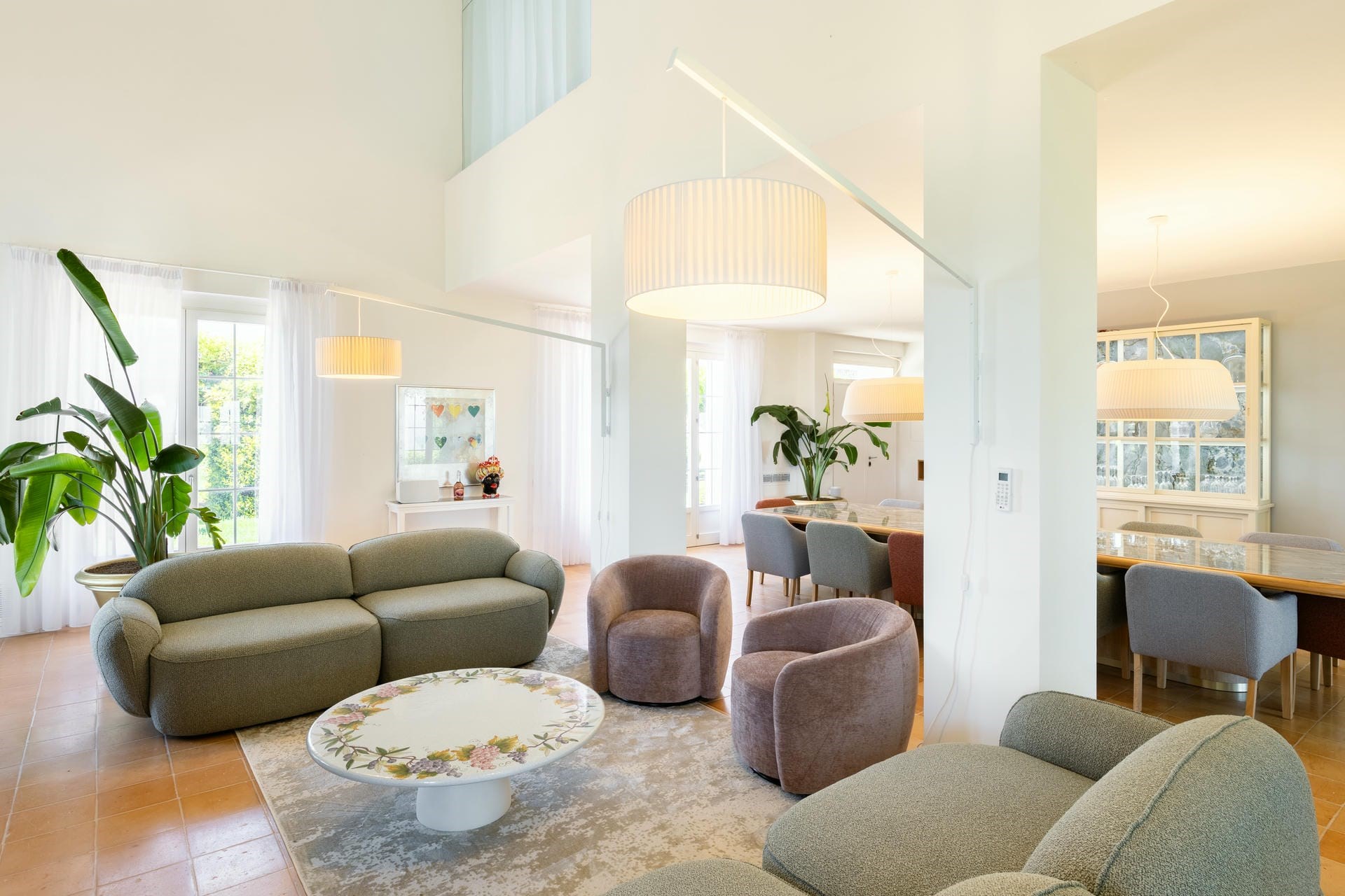 Around the villas are over 300 square metres of furnished terraces with Italian stone tiles, offering the perfect place to relax in the sunshine and enjoy outdoor al fresco meals. There is plenty of seating, including plush sofas, cosy coffee table settings, and outdoor dining tables overlooking the green valleys and sprawling gardens.