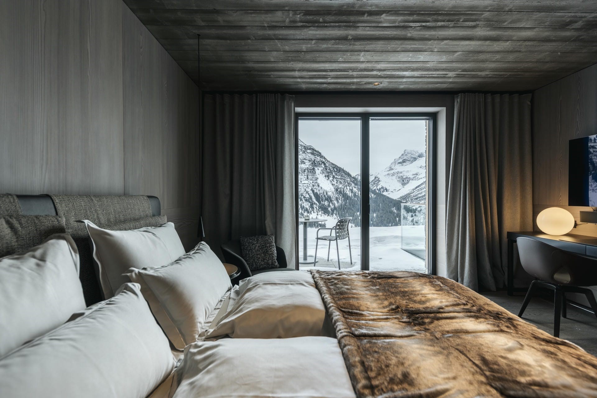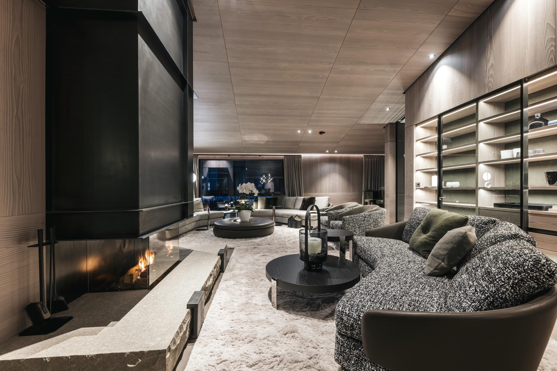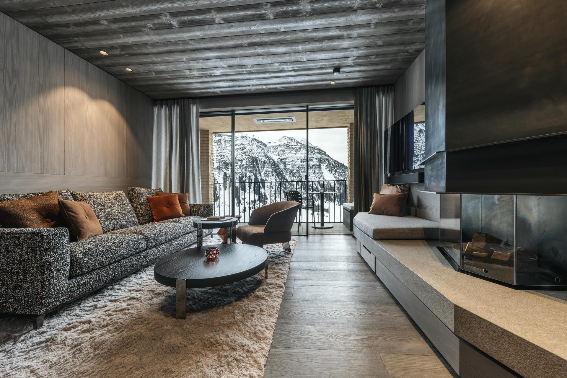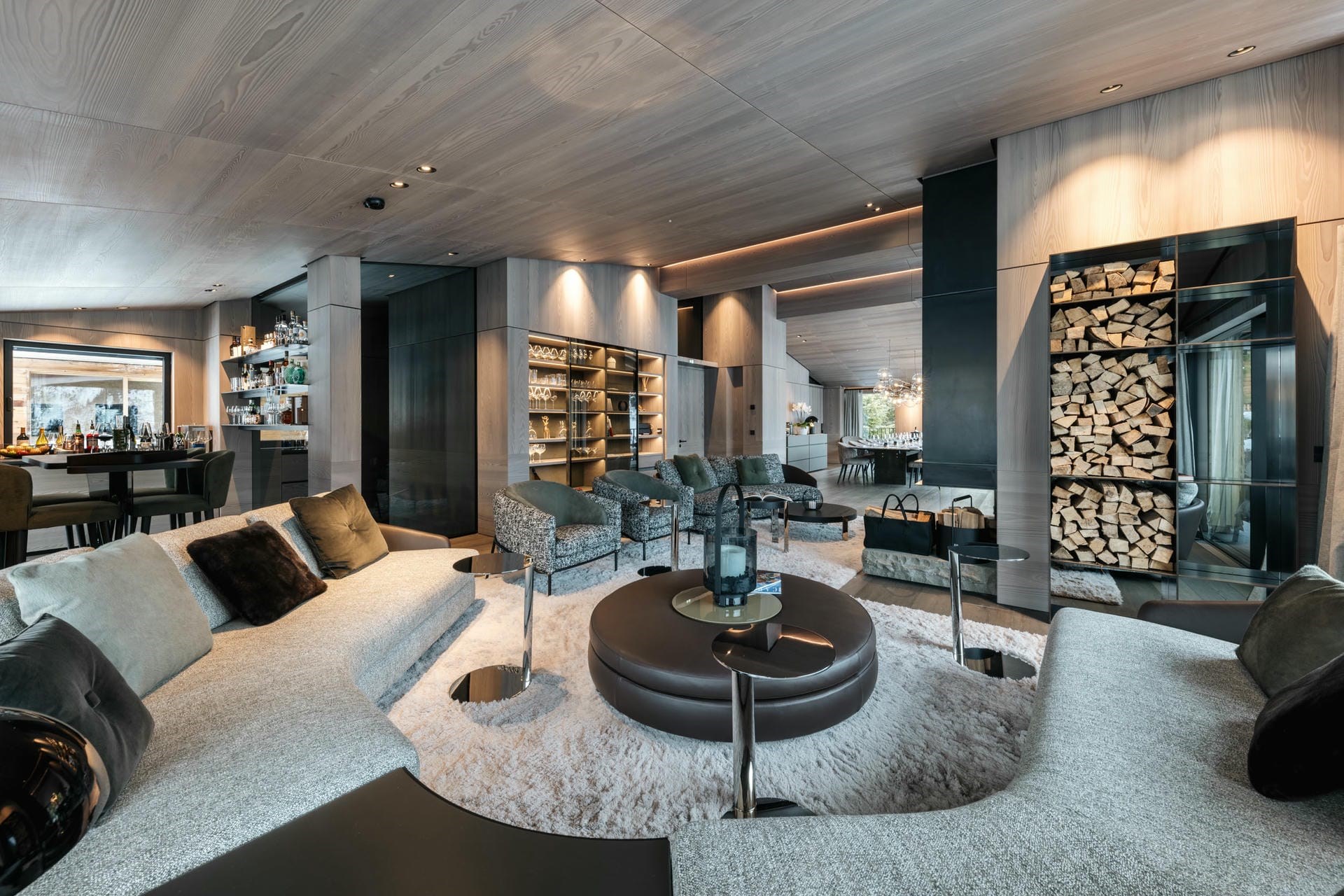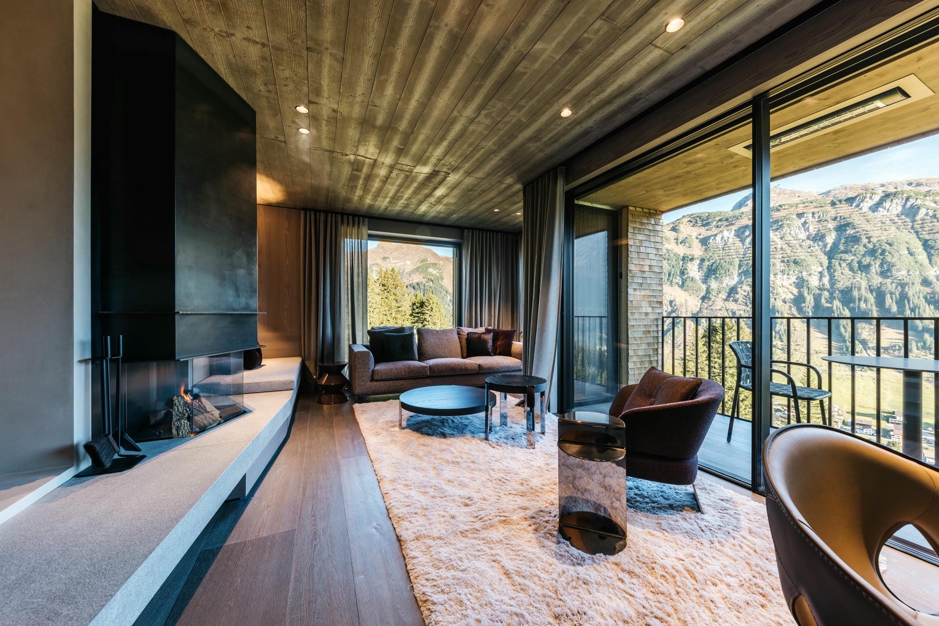 Le Chalet blends traditional Austrian charm with contemporary opulence both indoors and out. The exterior is crafted from natural materials, such as aged timber and local stone for an authentic alpine feel. Its sprawling terrace, complete with plush outdoor seating a built-in fireplace offers to perfect place to soak up panoramic alpine views with a glass of bubbly in hand.
