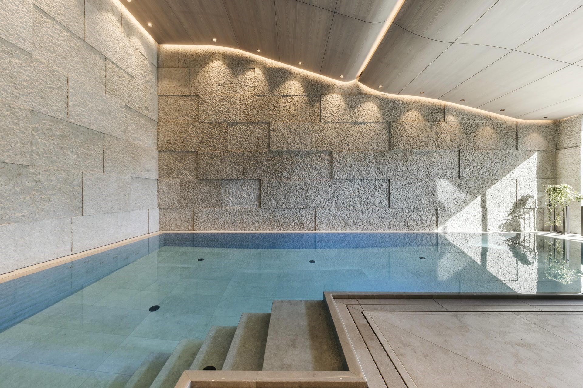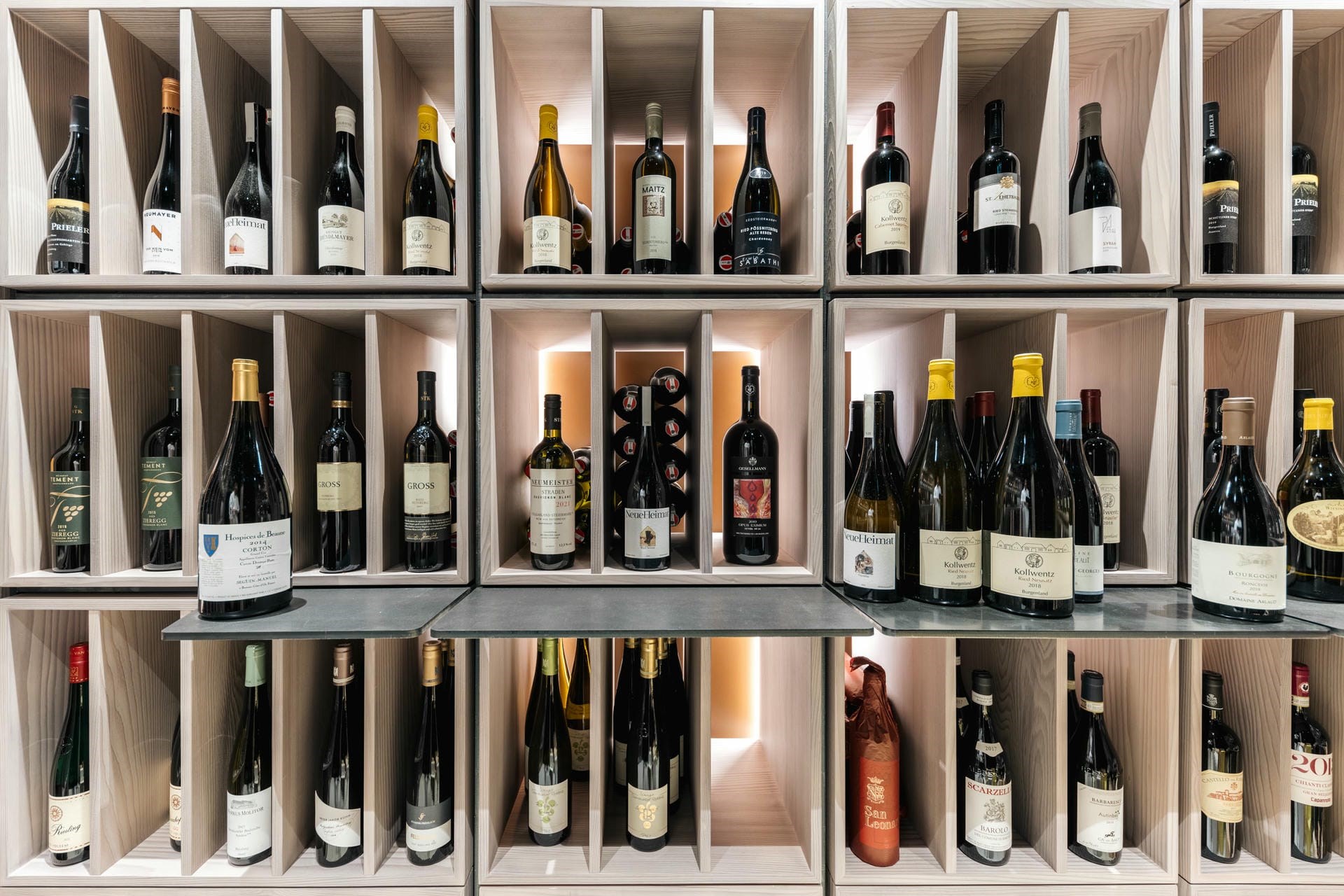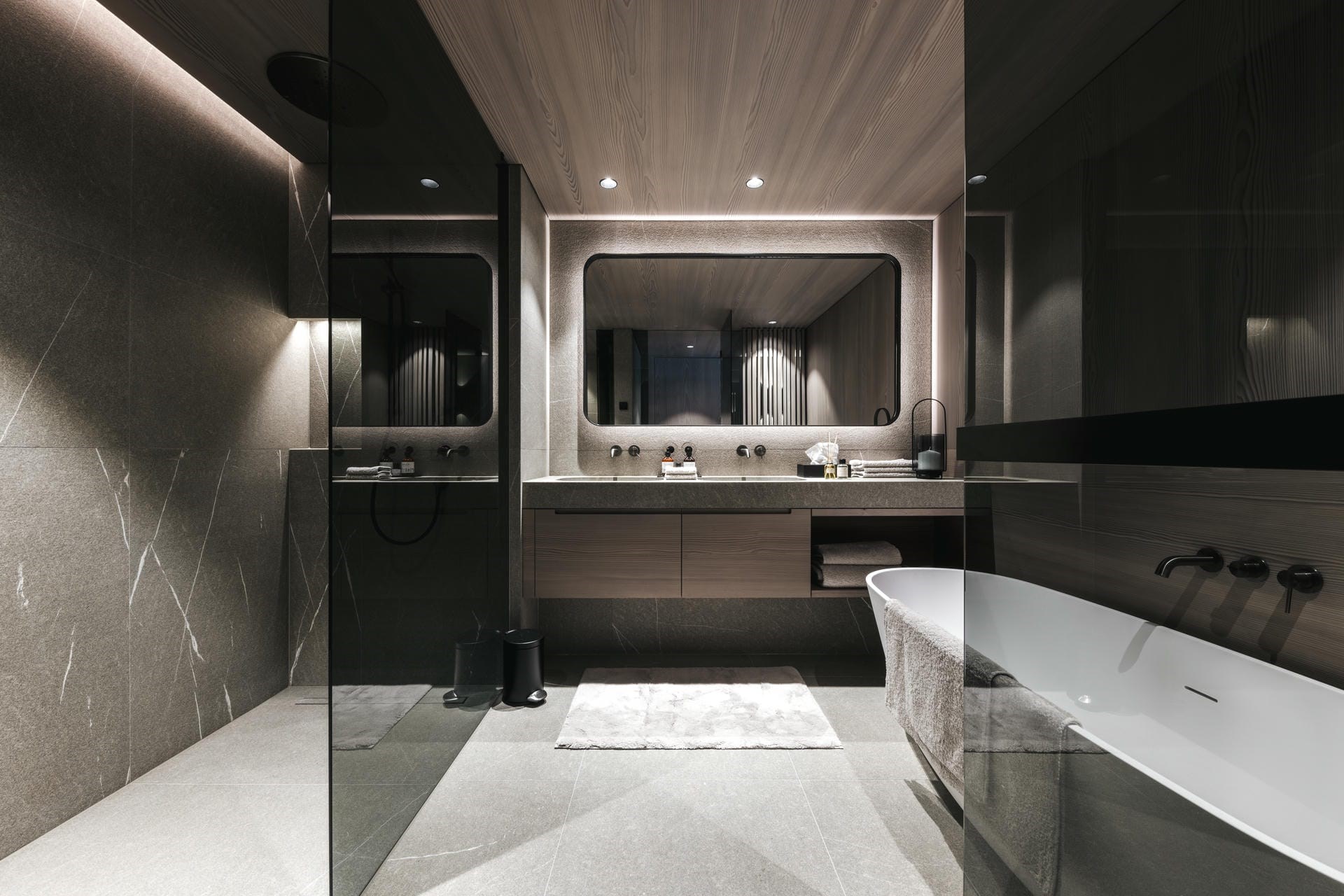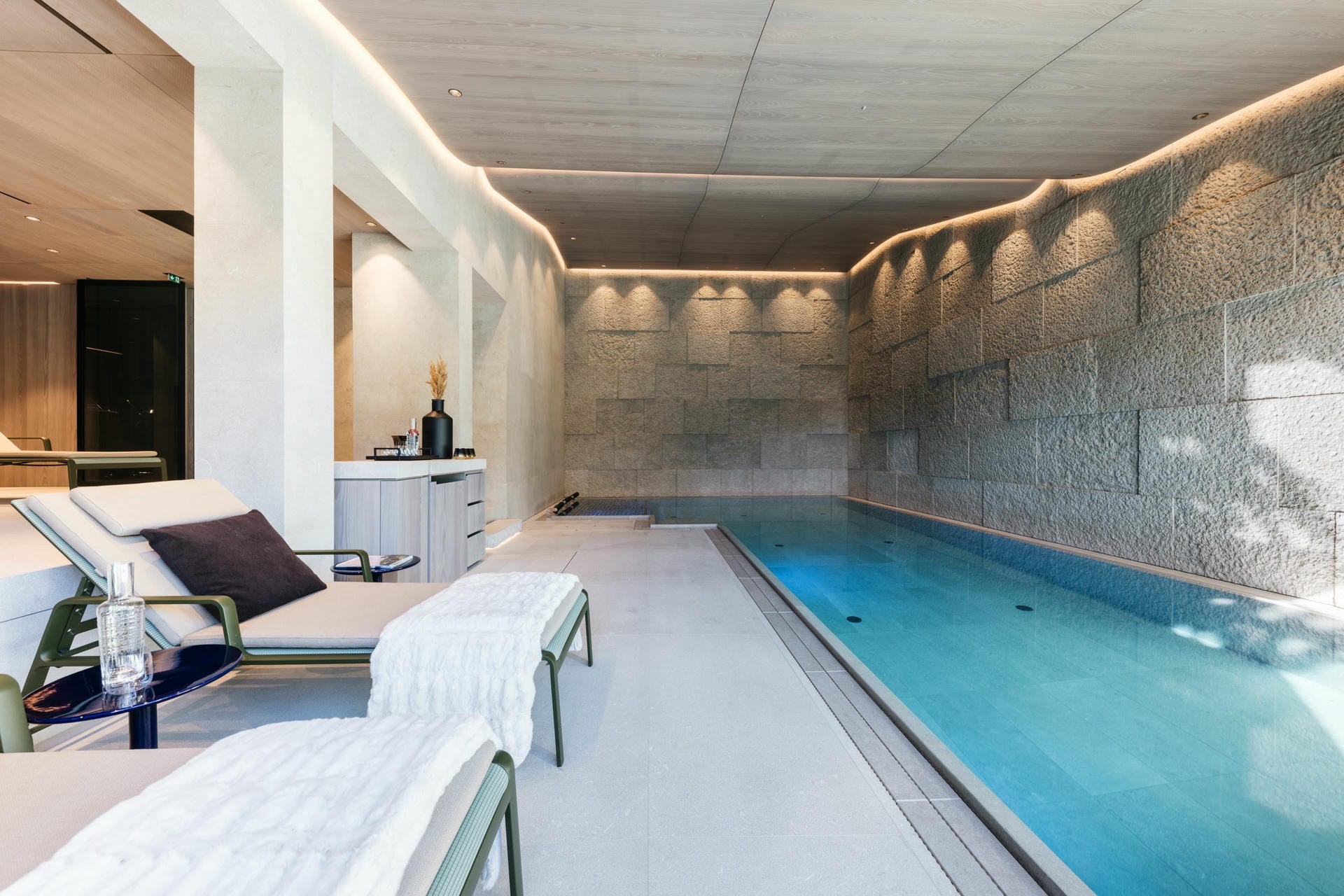 A lift whisks guests down to the ground floor, which is dedicated to relaxation and wellness. A second lounge, with a bar and cinema area, provides more space for evening relaxation and socialisation, perhaps enjoying a glass of wine from the cellar, which includes rarities from all around the world, curated by Austria’s only Master Sommelier.