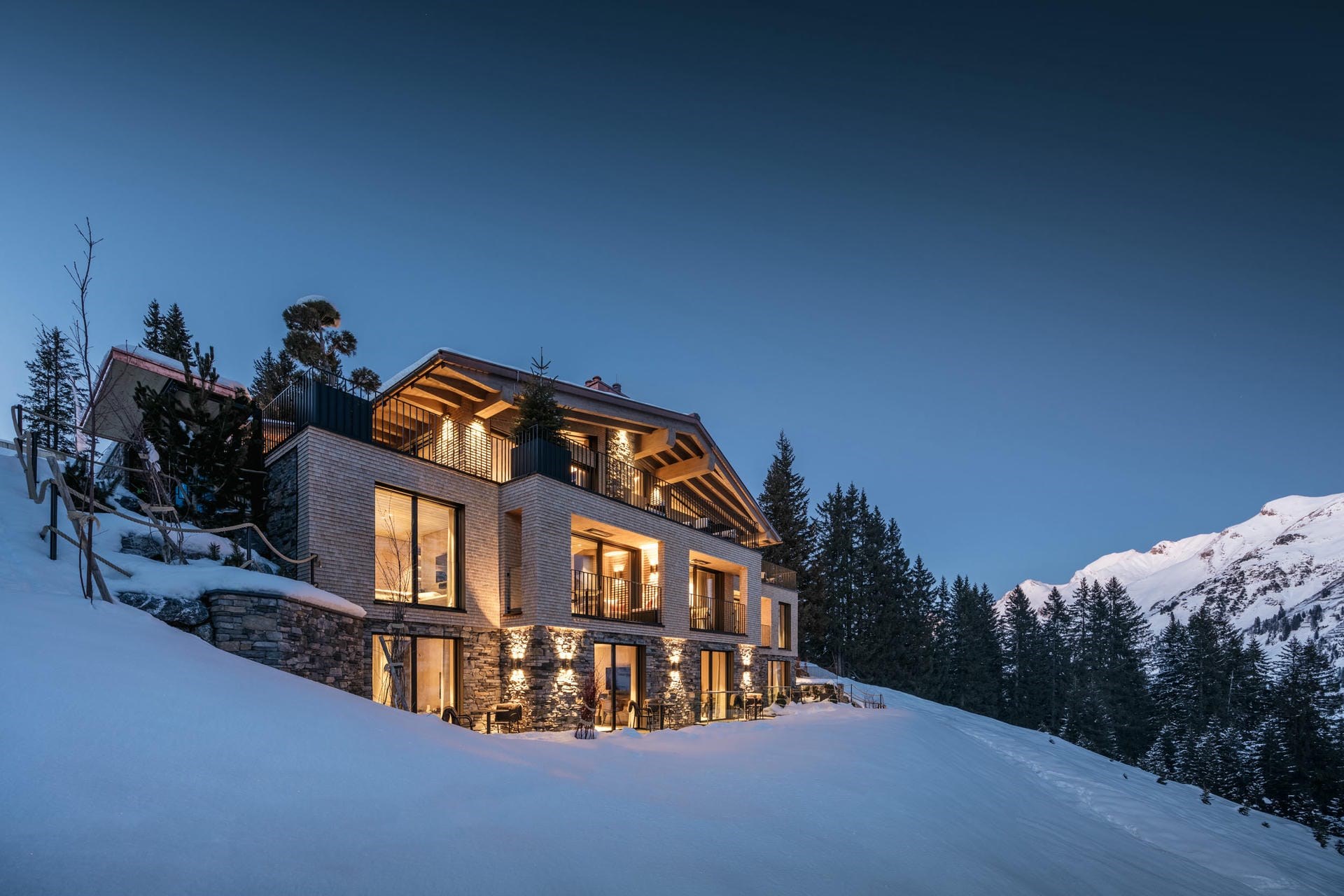 A modern masterpiece on the slopes of Oberlech with ski-in/ski-out access and a luxurious private spa