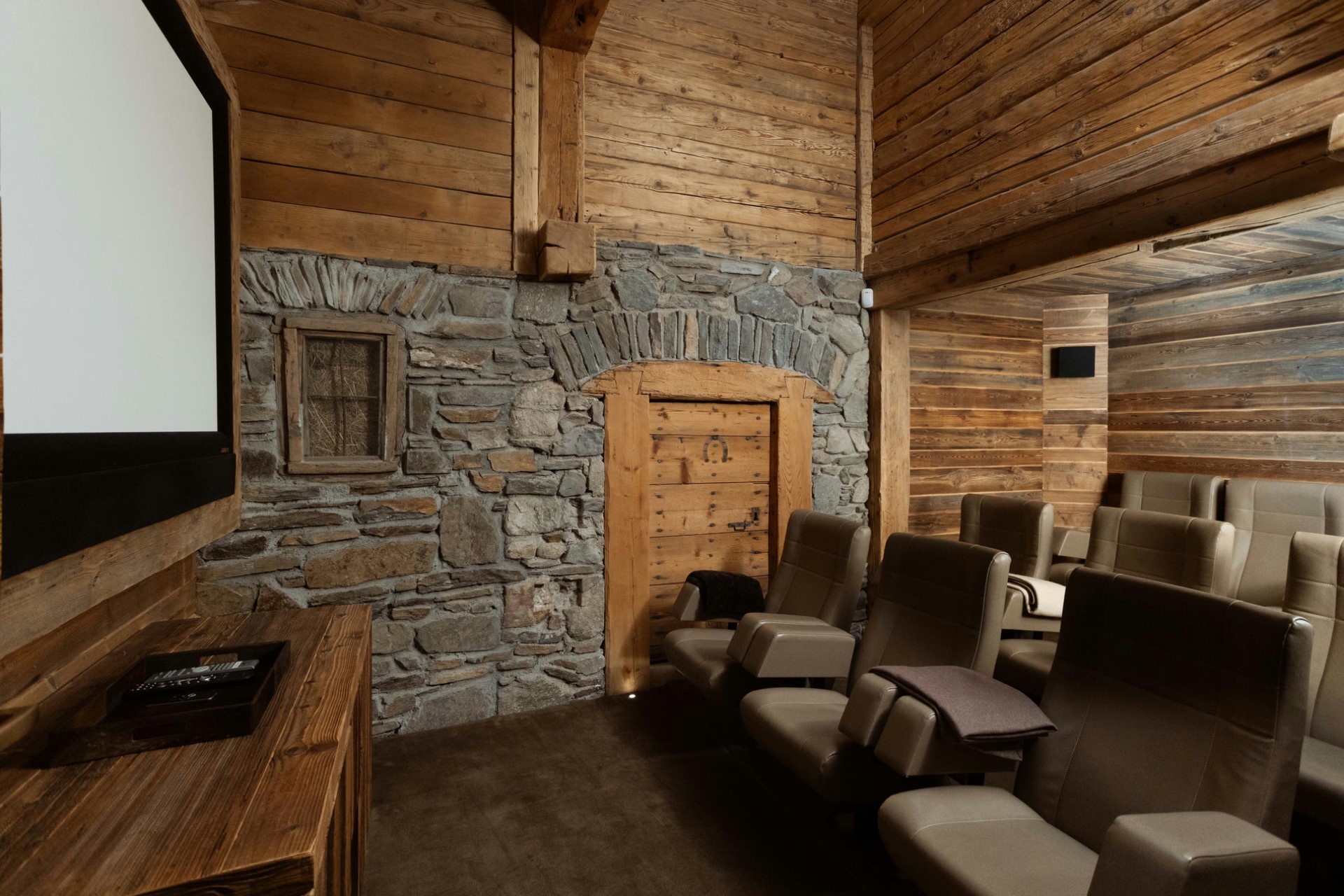 A second, smaller living room is ideal for more intimate get-togethers. It offers plush seating and a fully-equipped bar for an après ski tipple. Moreover, guests can select their favourite crisp whites or warming reds from the well-stocked wine cellar.