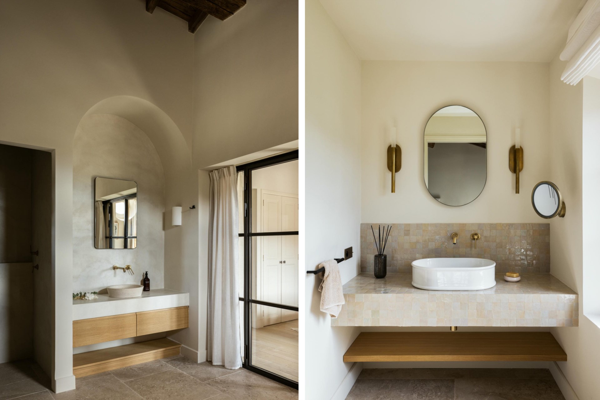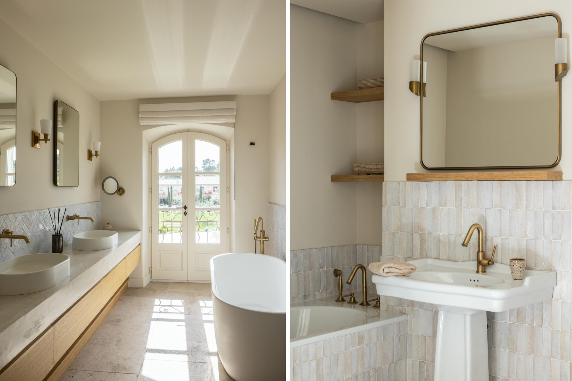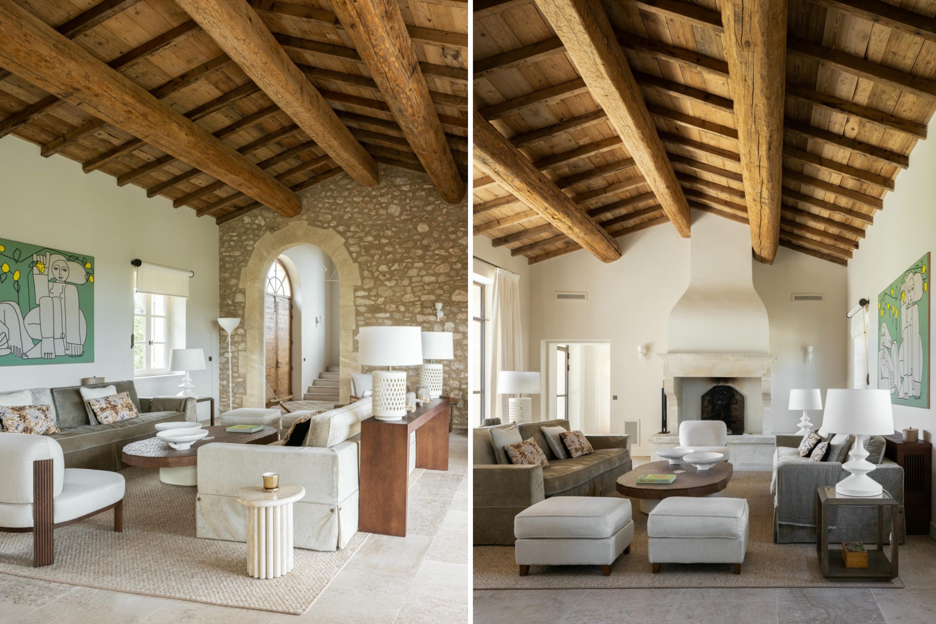 The left wing of the mas houses the six en-suite bedrooms, offering comfortable and private sanctuaries. On the ground floor, a beautiful dormitory is perfect for younger guests, with two sets of integrated bunk beds, an en-suite bathroom with a bathtub, and direct garden access. As well as the dormitory, guests will find a king-sized bedroom that also leads directly into the garden, and another spacious bedroom, with a super-king-size bed, a luxurious bathroom, and a private terrace with captivating views of the Alpilles. Upstairs, three more super-king-size rooms offer stunning bathrooms and beautiful views of the surrounding countryside.