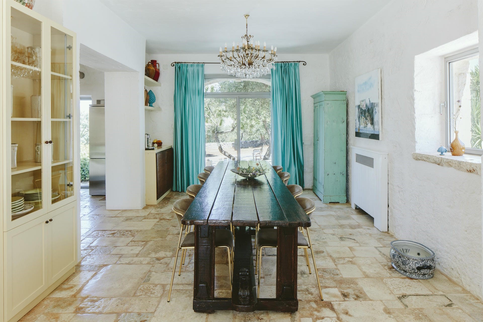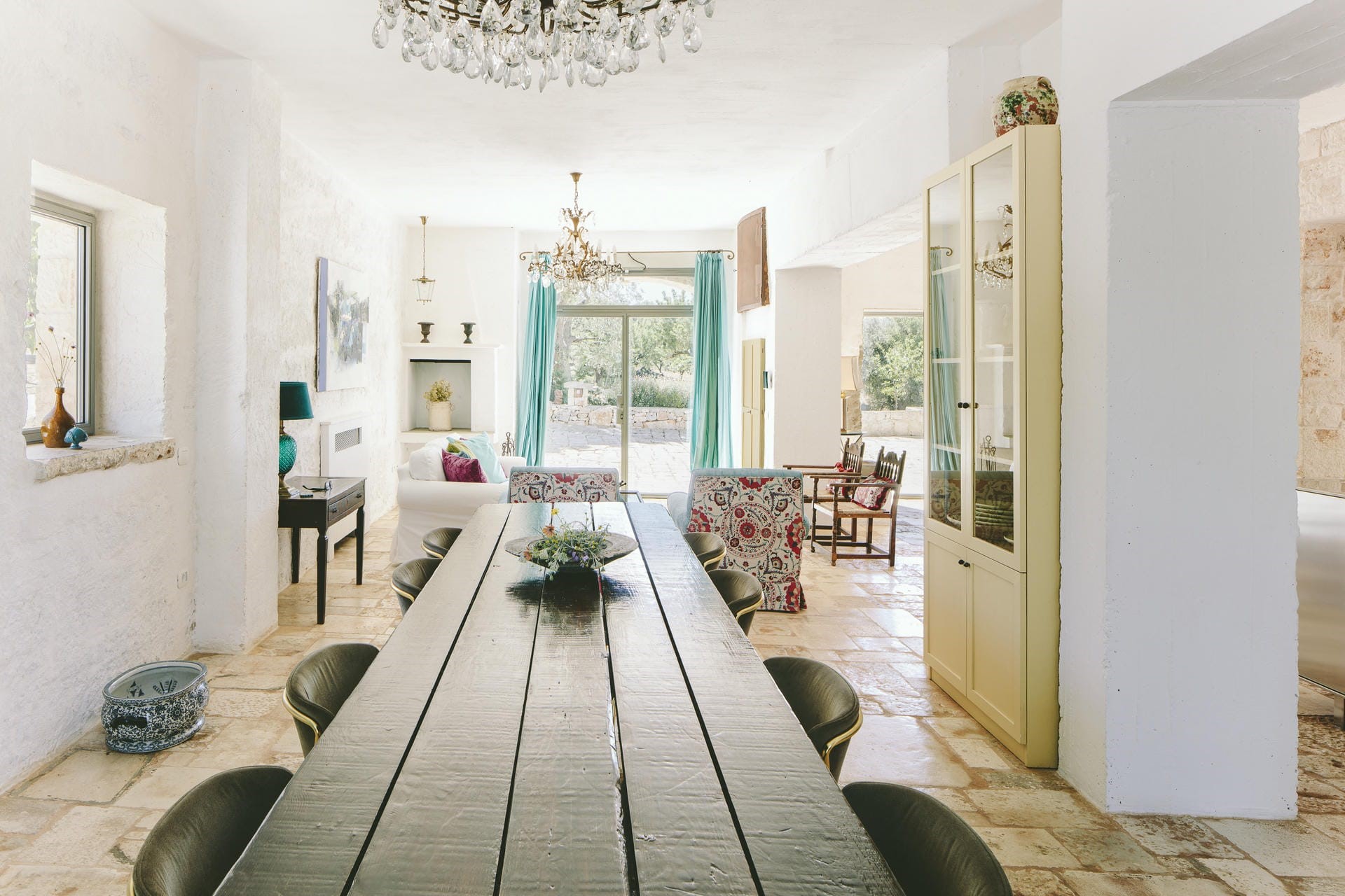 A fully equipped kitchen is available for guest use, though the masseria also features a professional kitchen where staff prepare meals, including the lavish welcome dinner. A bar and wine cellar offer added indulgence, while the library, cinema room and games room provide entertainment for all ages. There’s also a well-equipped fitness area and massage room for those seeking additional wellness time during their stay.