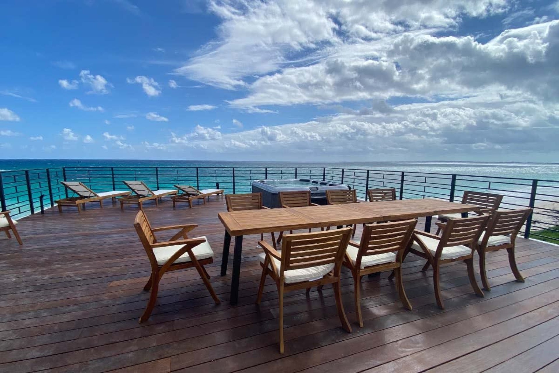 A luxurious beachfront villa with a private heated pool and spa facilities