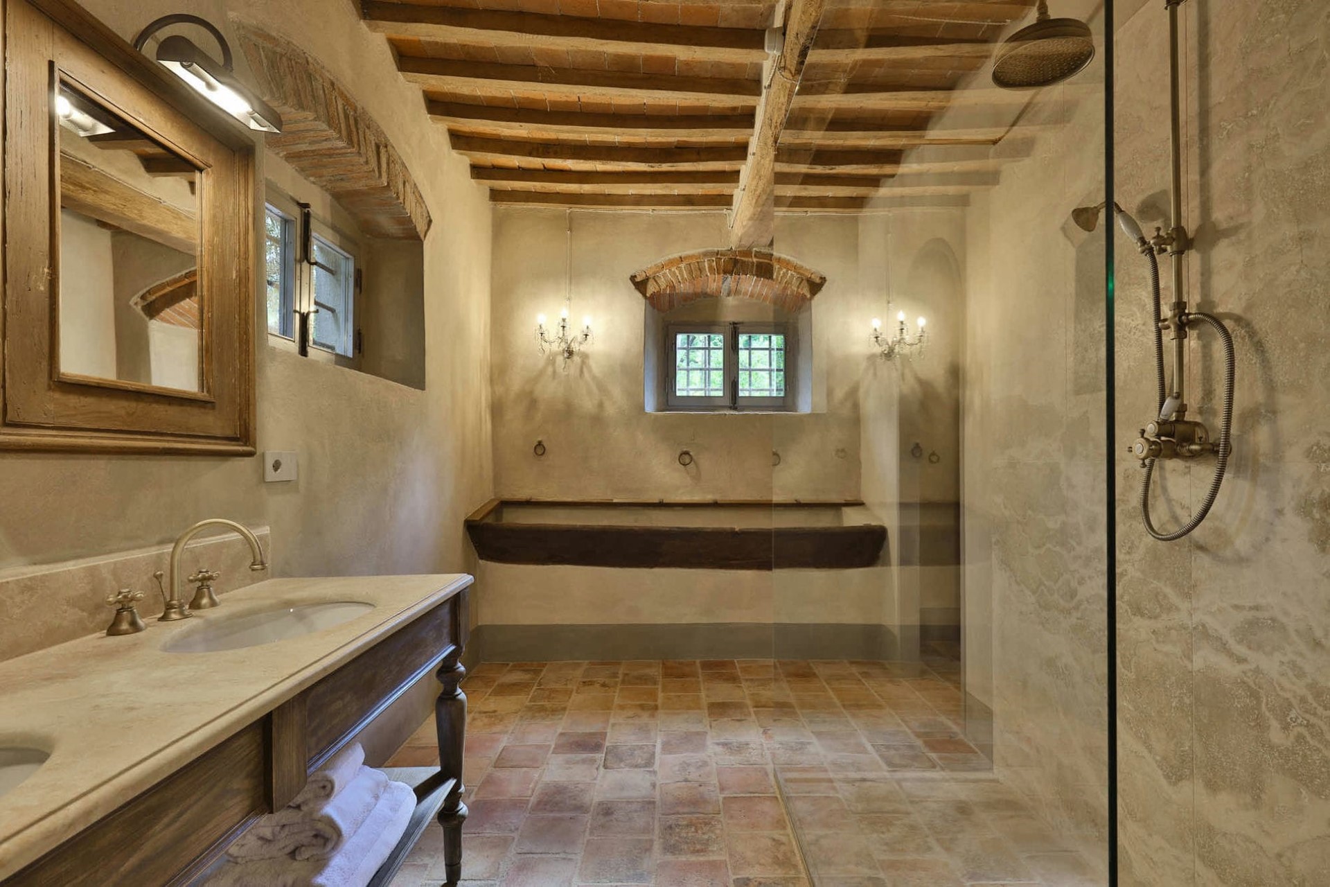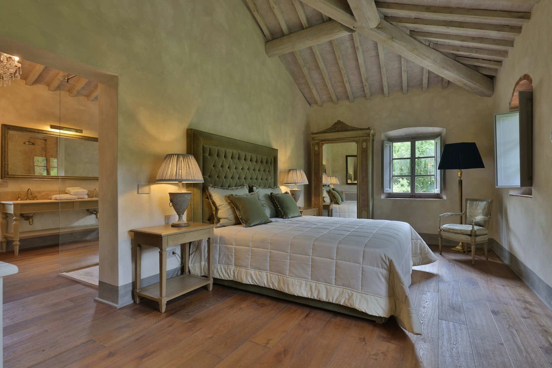 I Cipressi (Master Suite) – king-size bed and en-suite bathroom with dual vanity, bathtub & separate shower