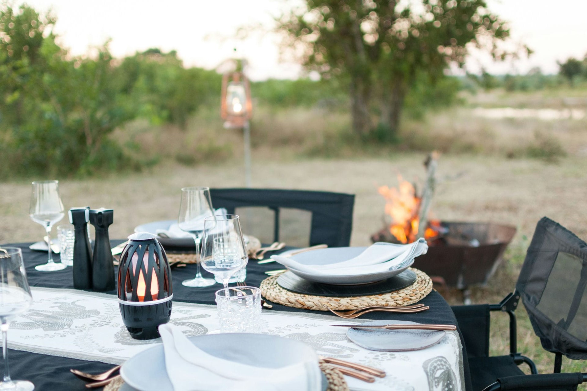 Guests can savour al fresco meals prepared by a private chef, served in the traditional boma – featuring a crackling fireplace and a braai for authentic South African barbecue – or further afield in captivating bush settings.