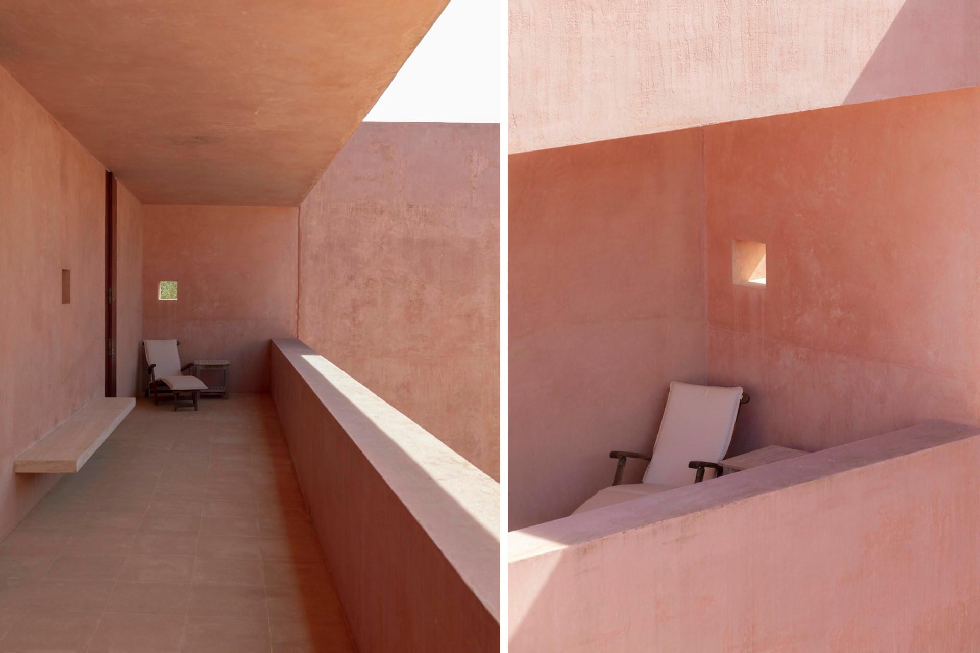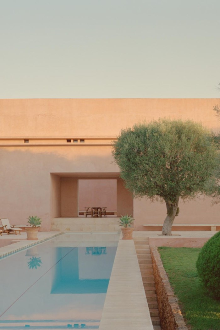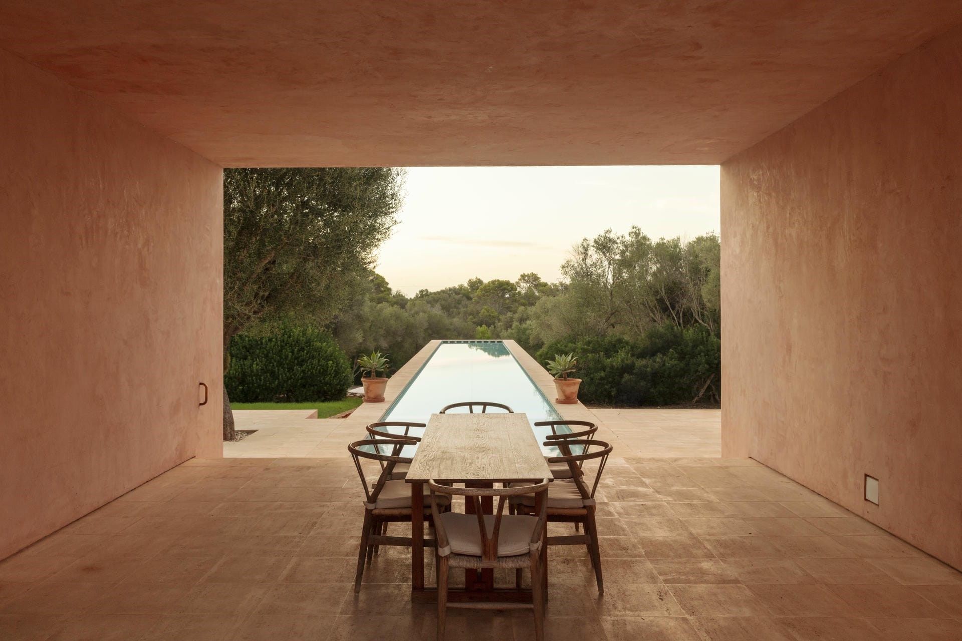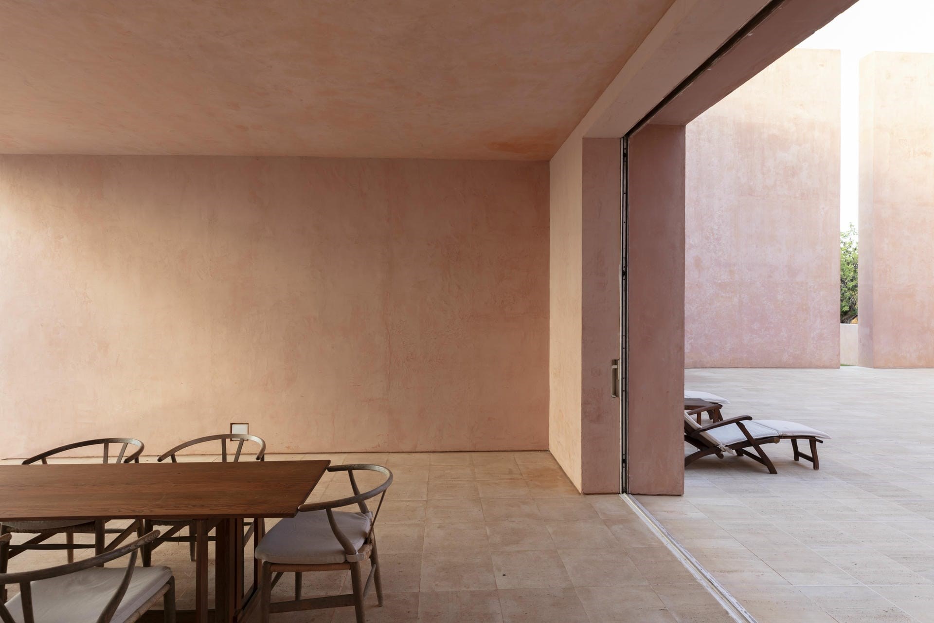 Designed in the late 1980s by world renowned architects John Pawson and Claudio Silvestrin, the villa’s minimalist aesthetic with clean lines and simple furnishings exemplifies the “less is more” philosophy. Its salmon pink exteriors offer the perfect contrast to the verdant surrounding landscape. A narrow slit in the towering facade leads to an expansive, high-walled courtyard, which forms the heart of the 600 square-metre villa and offers space to soak up the Spanish sunshine.