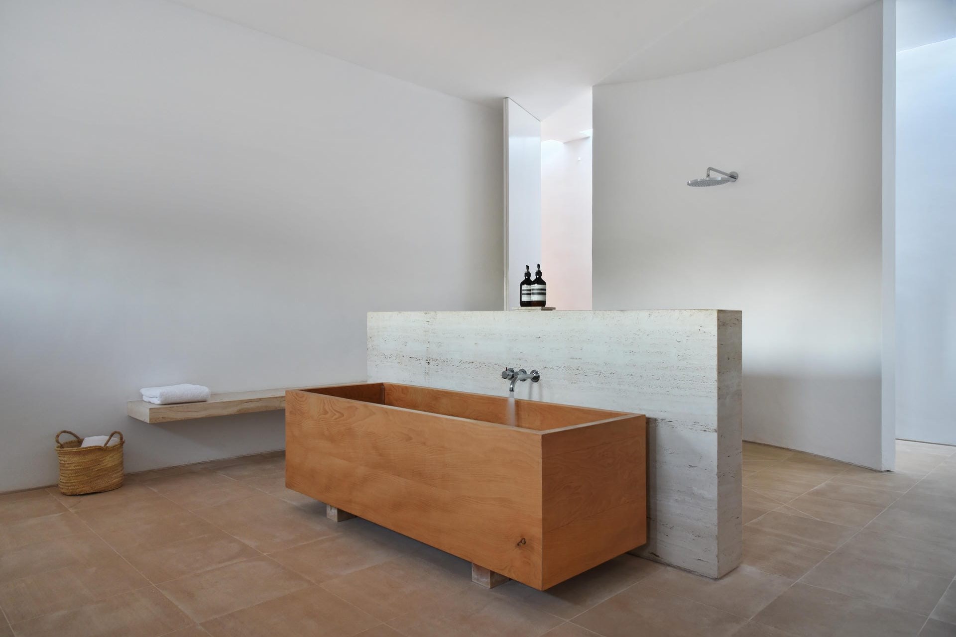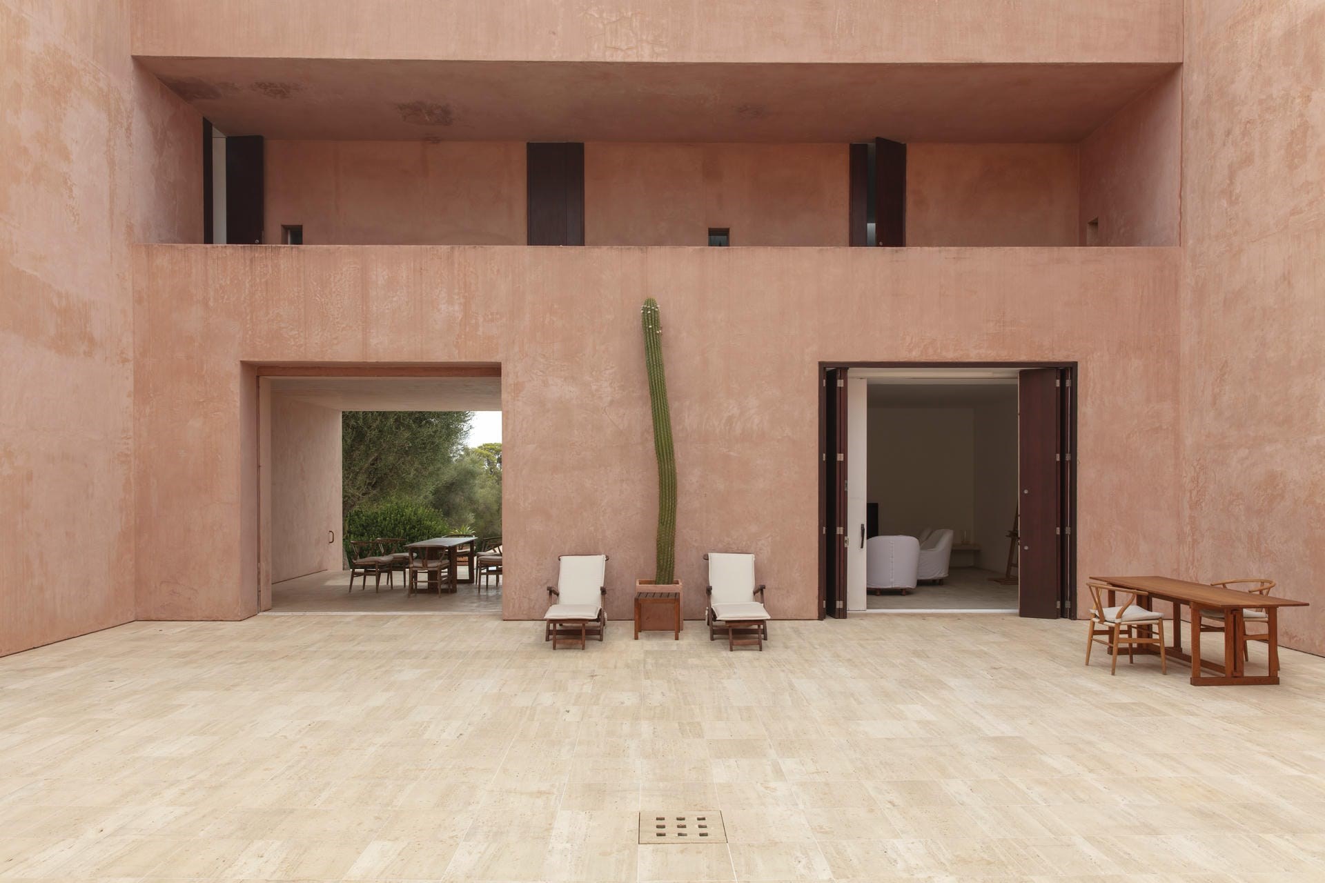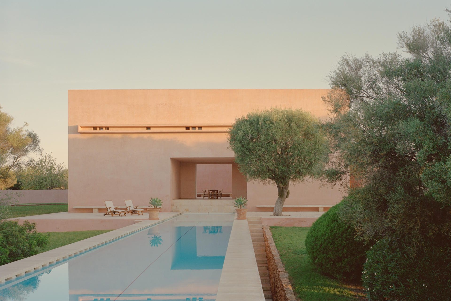 Designed in the late 1980s by world renowned architects John Pawson and Claudio Silvestrin, the villa’s minimalist aesthetic with clean lines and simple furnishings exemplifies the “less is more” philosophy. Its salmon pink exteriors offer the perfect contrast to the verdant surrounding landscape. A narrow slit in the towering facade leads to an expansive, high-walled courtyard, which forms the heart of the 600 square-metre villa and offers space to soak up the Spanish sunshine.