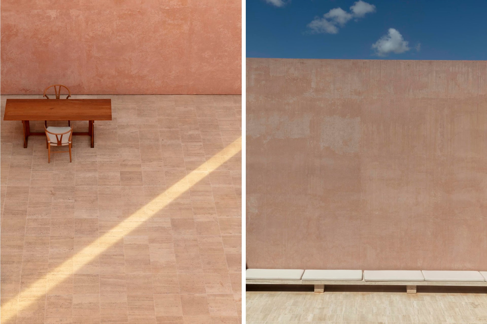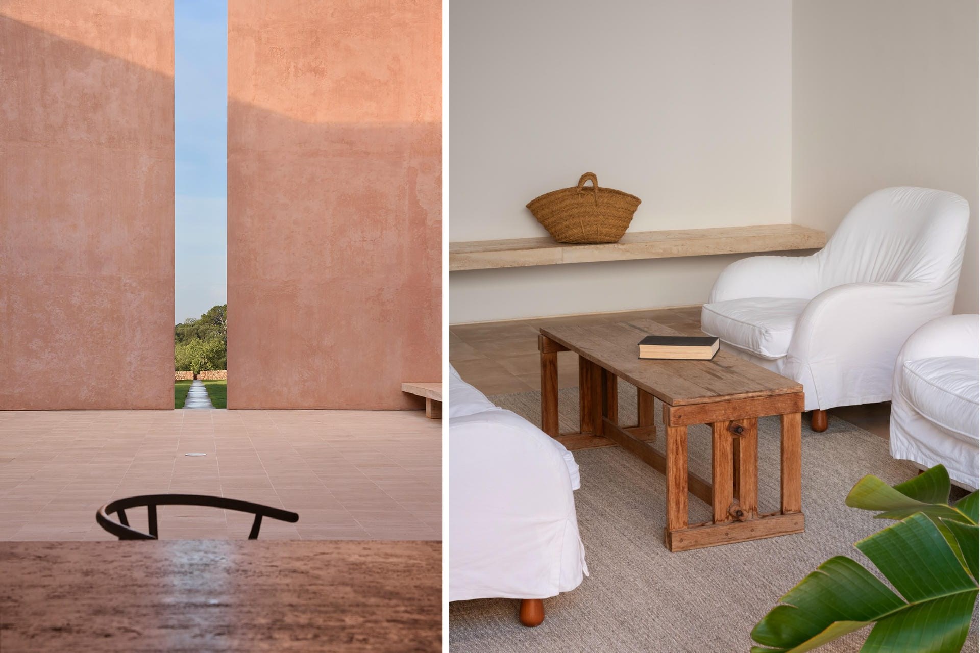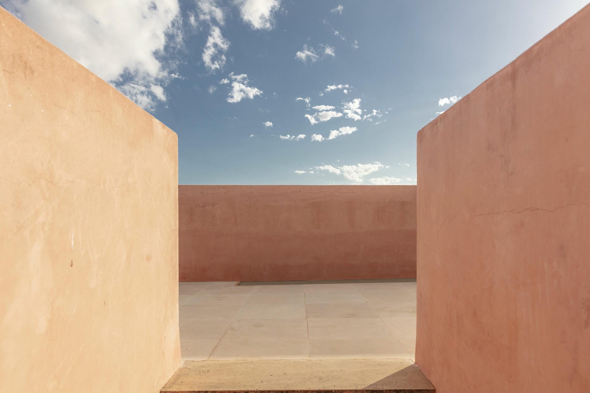 Designed in the late 1980s by world renowned architects John Pawson and Claudio Silvestrin, the villa’s minimalist aesthetic with clean lines and simple furnishings exemplifies the “less is more” philosophy. Its salmon pink exteriors offer the perfect contrast to the verdant surrounding landscape. A narrow slit in the towering facade leads to an expansive, high-walled courtyard, which forms the heart of the 600 square-metre villa and offers space to soak up the Spanish sunshine.