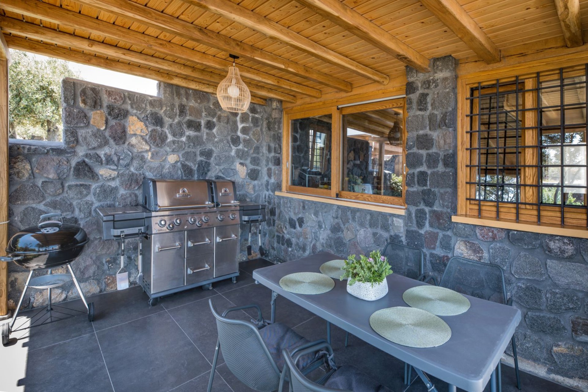 When seeking respite from the sun, guests can relax in the main poolside lounge area, shaded by a wooden pergola or enjoy al fresco meals and barbecues at the large outdoor table on the main terrace. There are various other sitting areas throughout the grounds, providing plenty of spaces for guests to socialise together, or perhaps find a quiet place to relax and catch up on a holiday read.