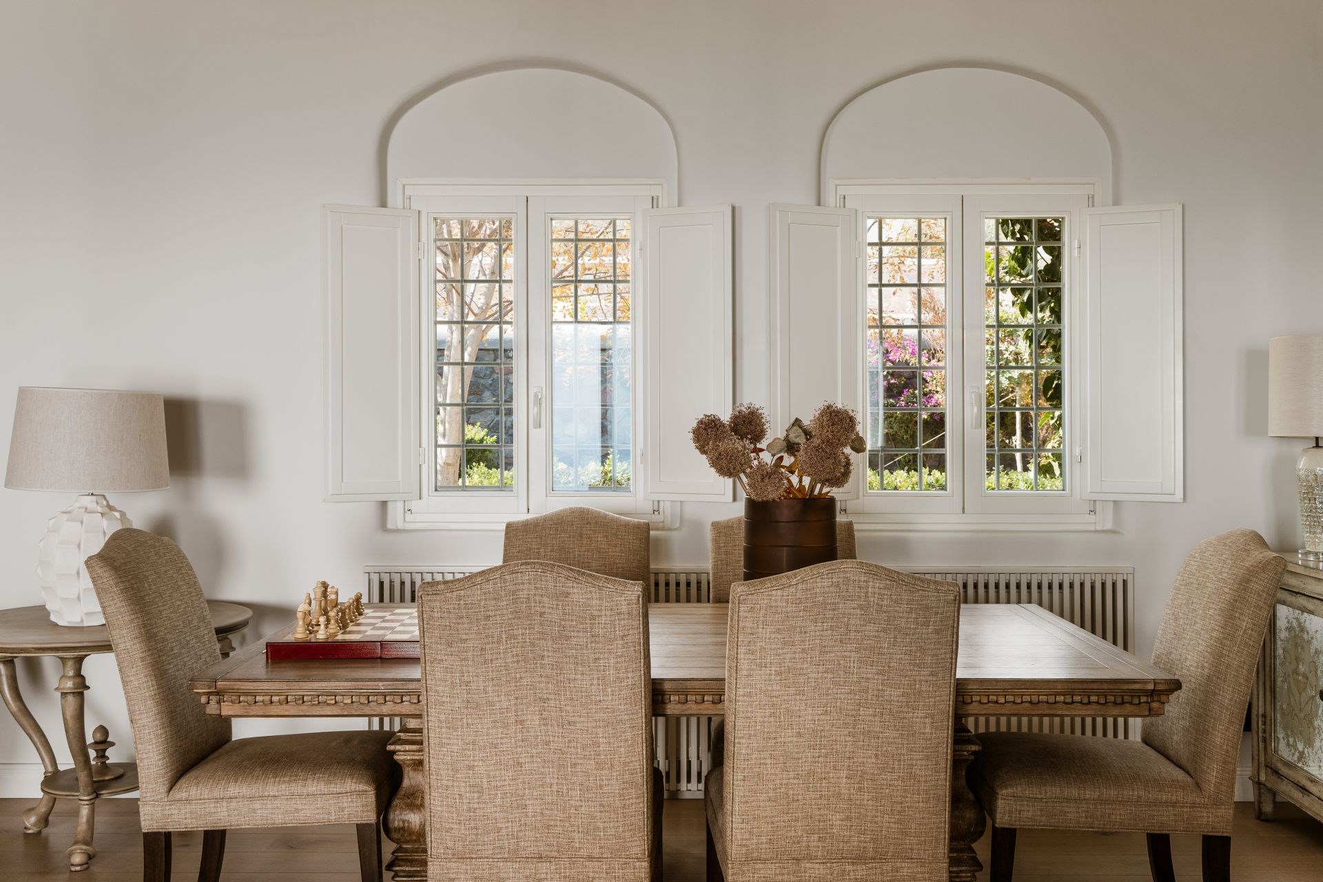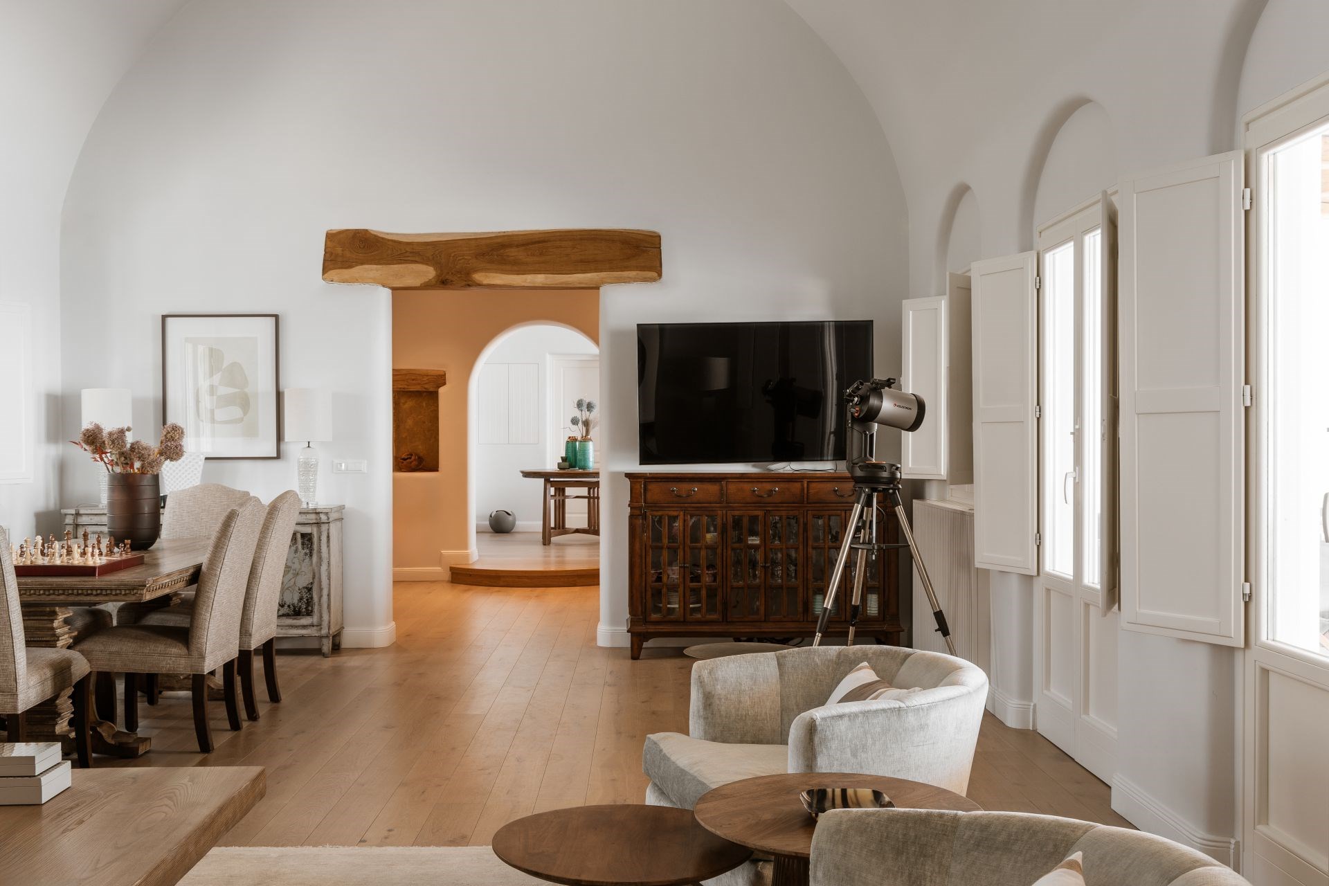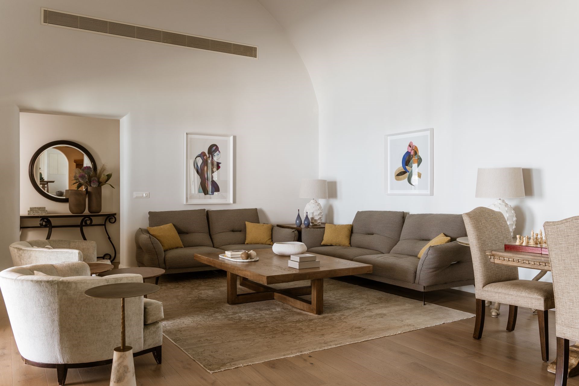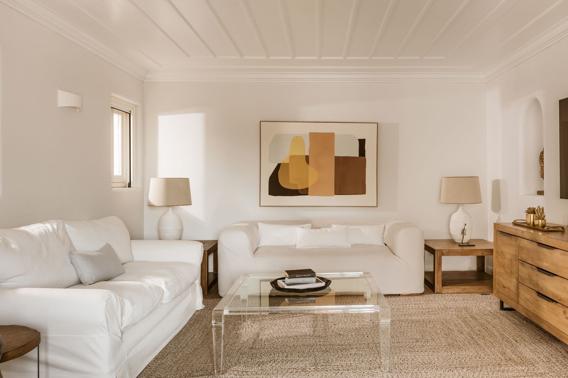 Indoors, white walls and wooden floors create a spacious yet homely feel, whilst large windows allow cool breezes to flow through the living spaces. Luxurious furnishings in earthy colours add to the homely feel and provide an elevated level of comfort.