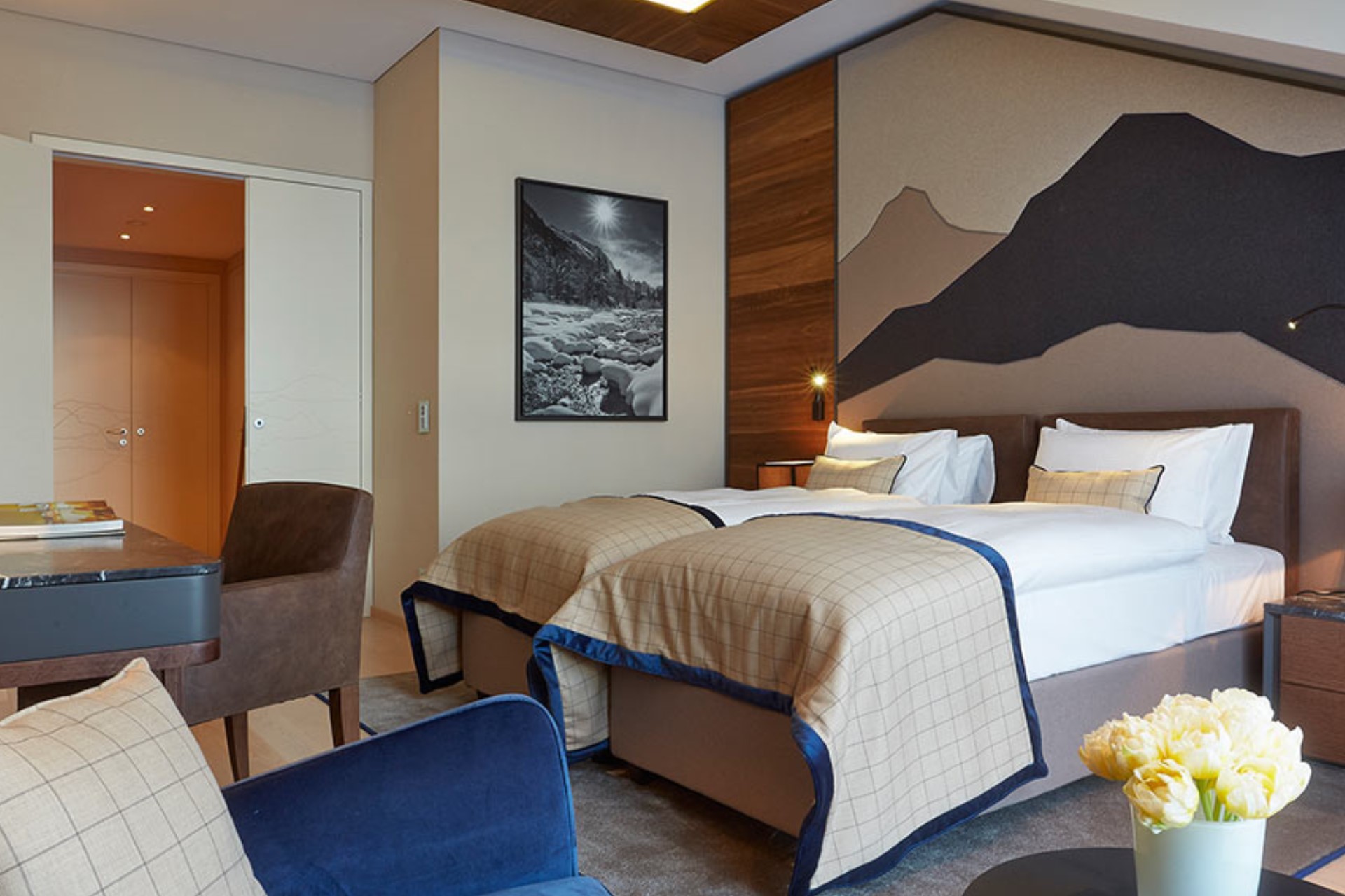 Piz Bellavista is a luxury three-bedroom duplex apartment set over two floors. It is the ideal accommodation for a deluxe ski holiday in the St Moritz, where guests no longer have to choose between privacy and pampering. They can be surrounded by the lavish comfort provided by their private holiday home while indulging in the services and facilities offered by the famous 5-star Kempinski Grand Hotel des Bains, adjacent to the residence.