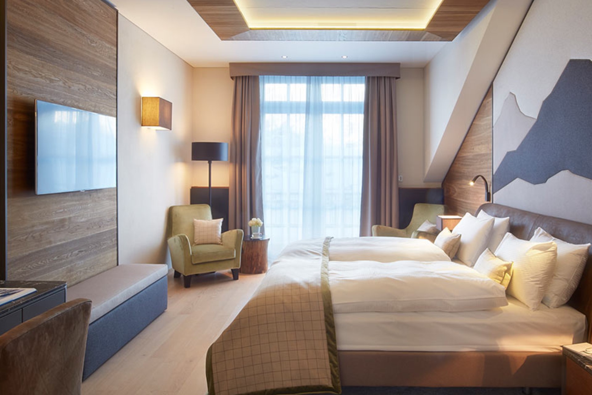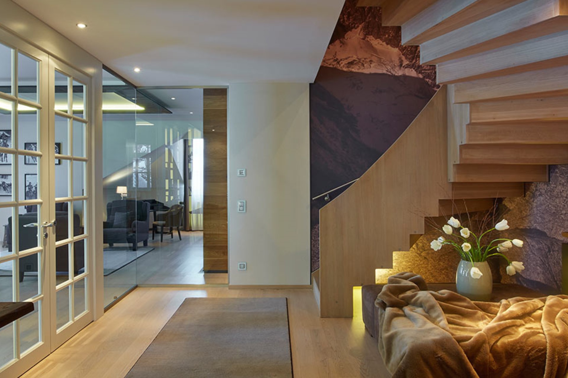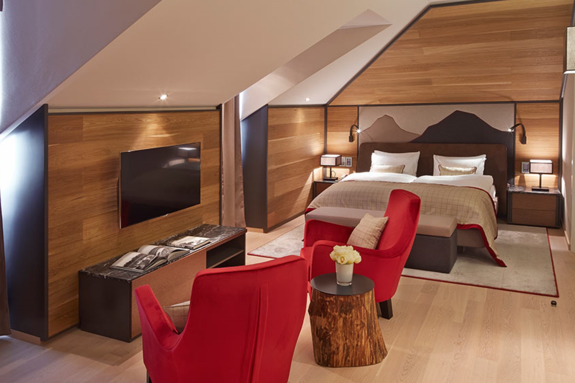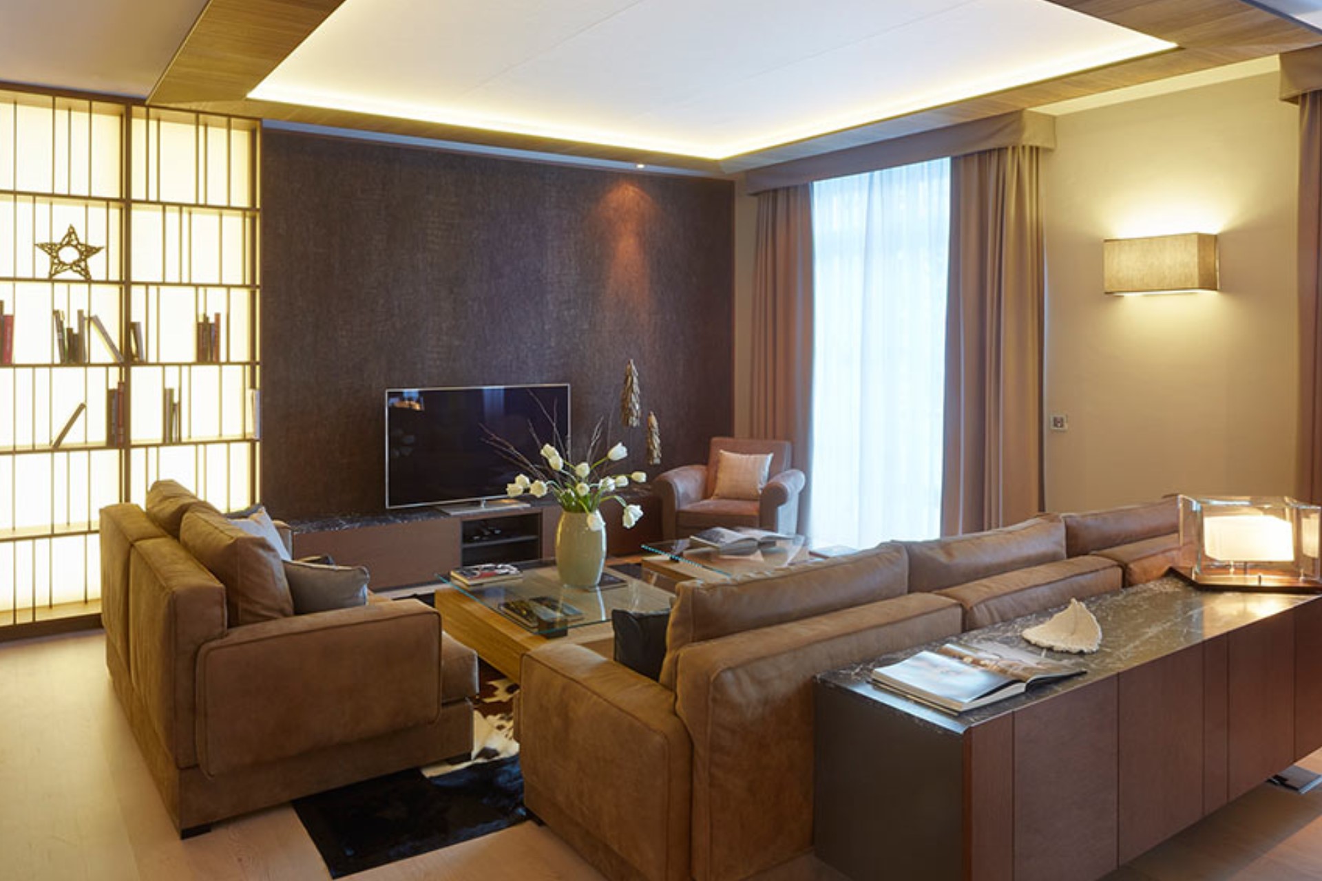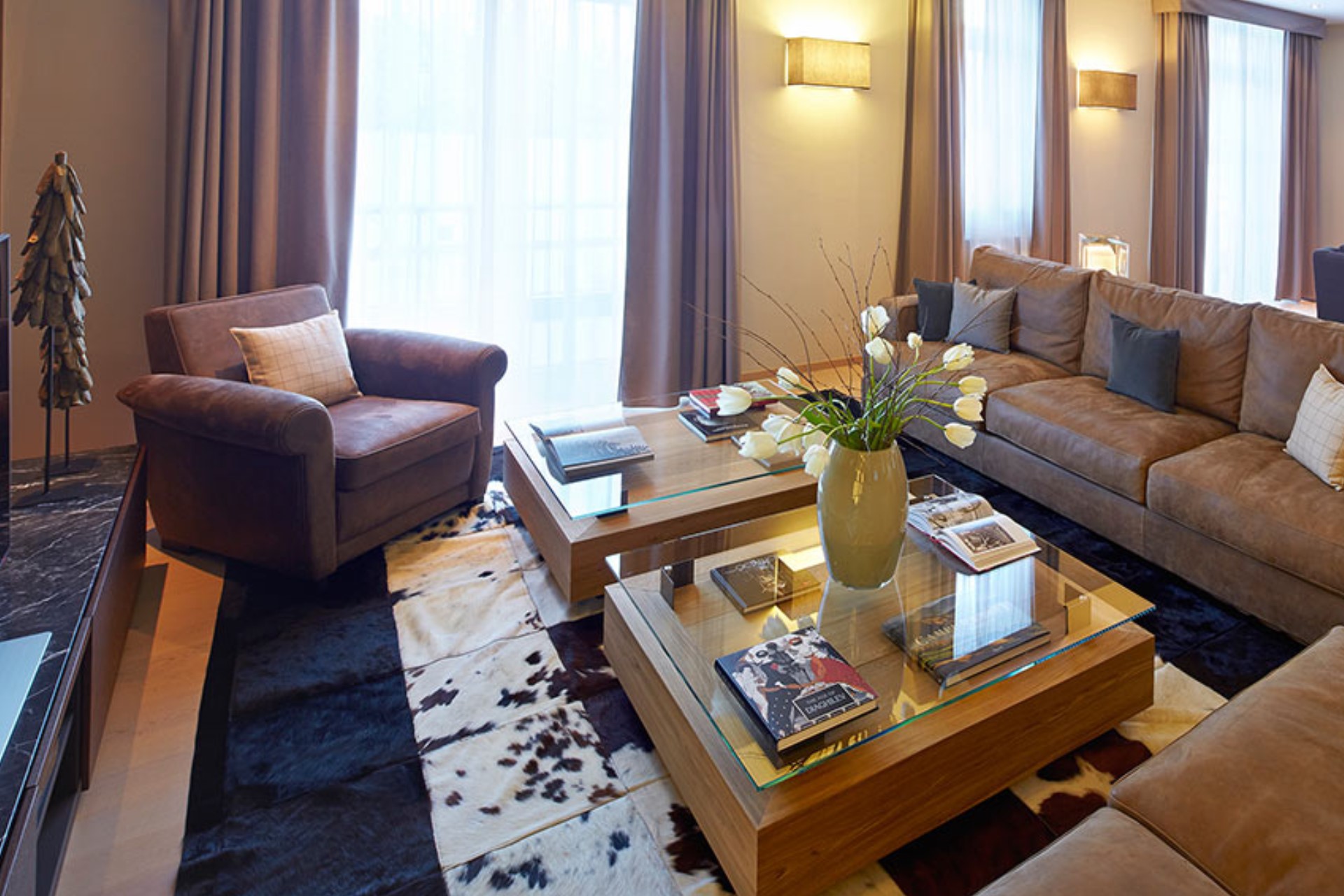 The apartment has a contemporary Alpine style décor, designed by renowned architects with great attention to detail to offer luxury living in Switzerland’s premium ski resort known for world class skiing.
