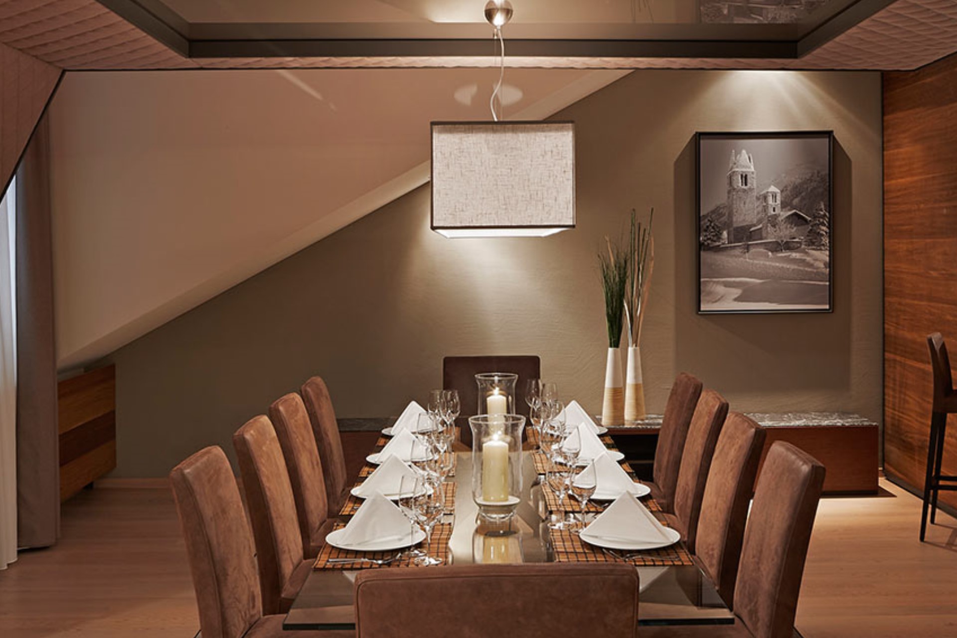 Piz Bellavista covers 400 square metres and features a large living room, a dining room with a fully-equipped kitchen, along with balconies to take in the impressive views over the Engadin Valley.
