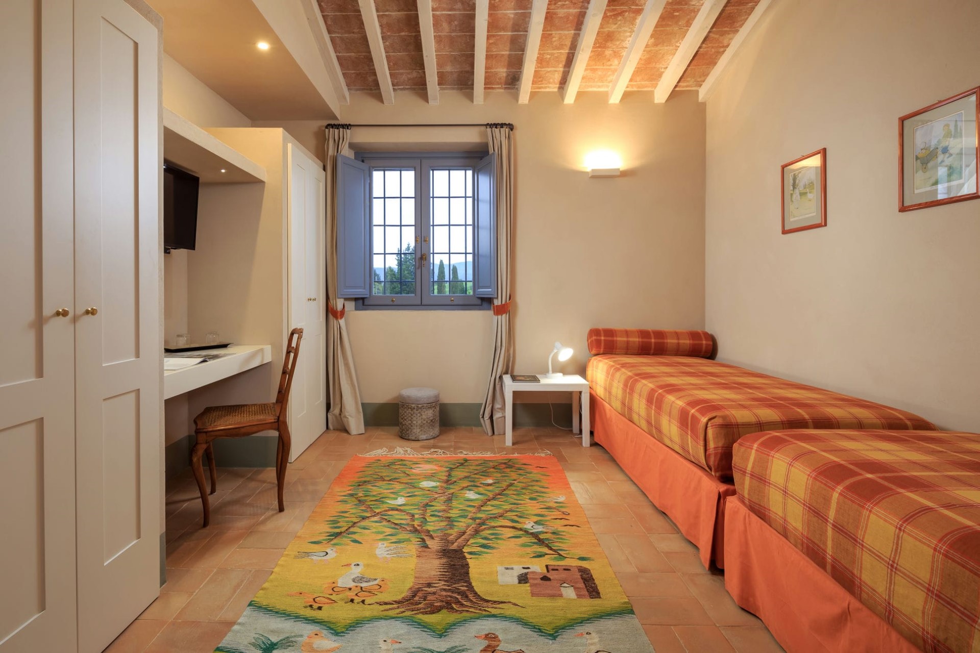 Podere Capannelle is in the heart of the UNESCO World Heritage-protected Val d’Orcia region of Tuscany. Its countryside surroundings provide peace and privacy, though the amenities and conveniences of the local villages and towns are just a short drive away.