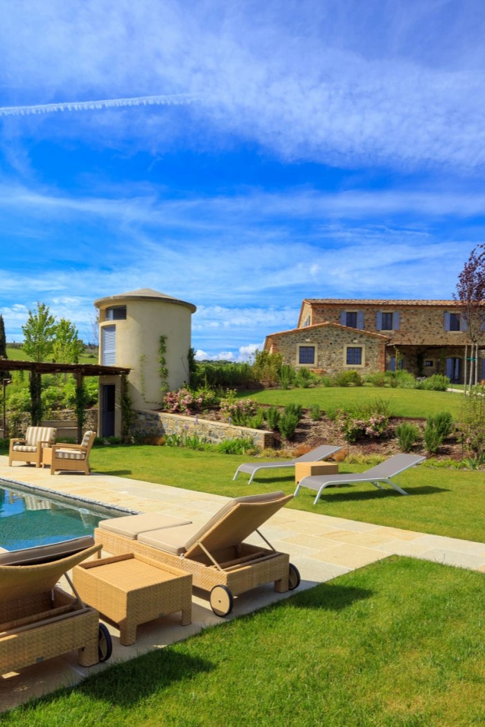 Podere Capanelle is a beautifully-restored historic property dating back to the 16th century. The private estate spans six acres and boasts stunning 360-degree views of the Tuscan countryside and surrounding villages.