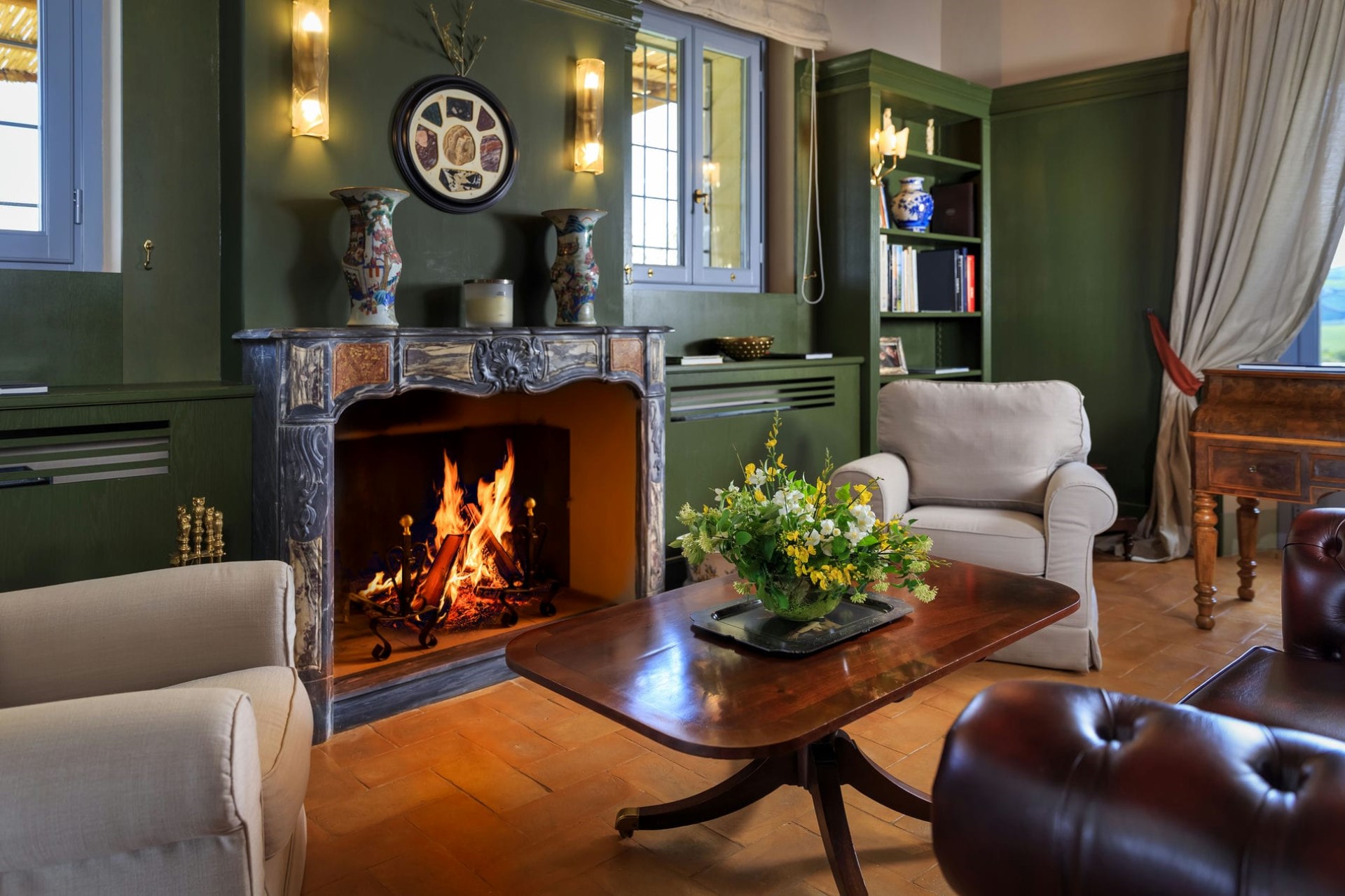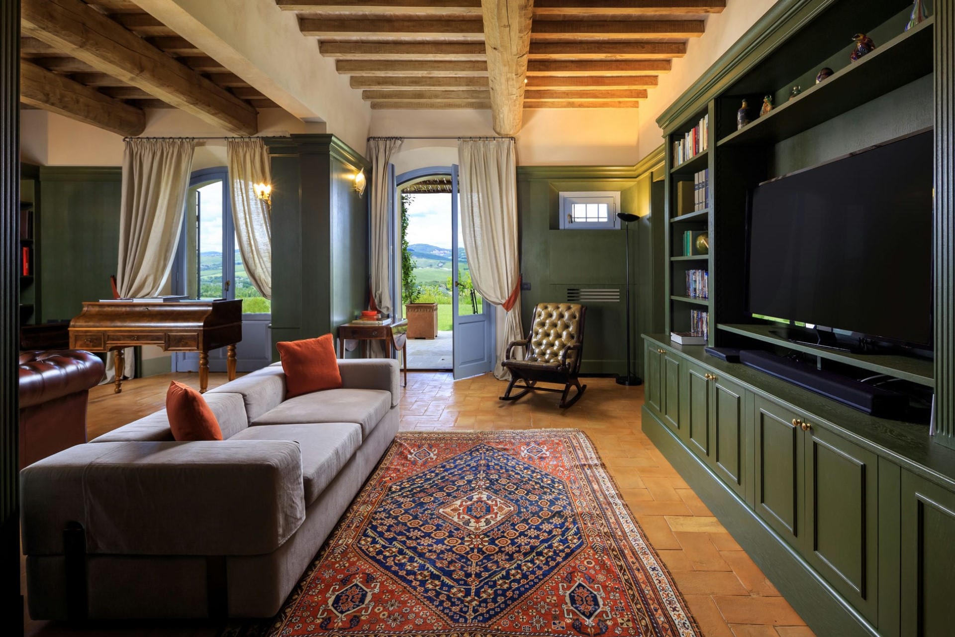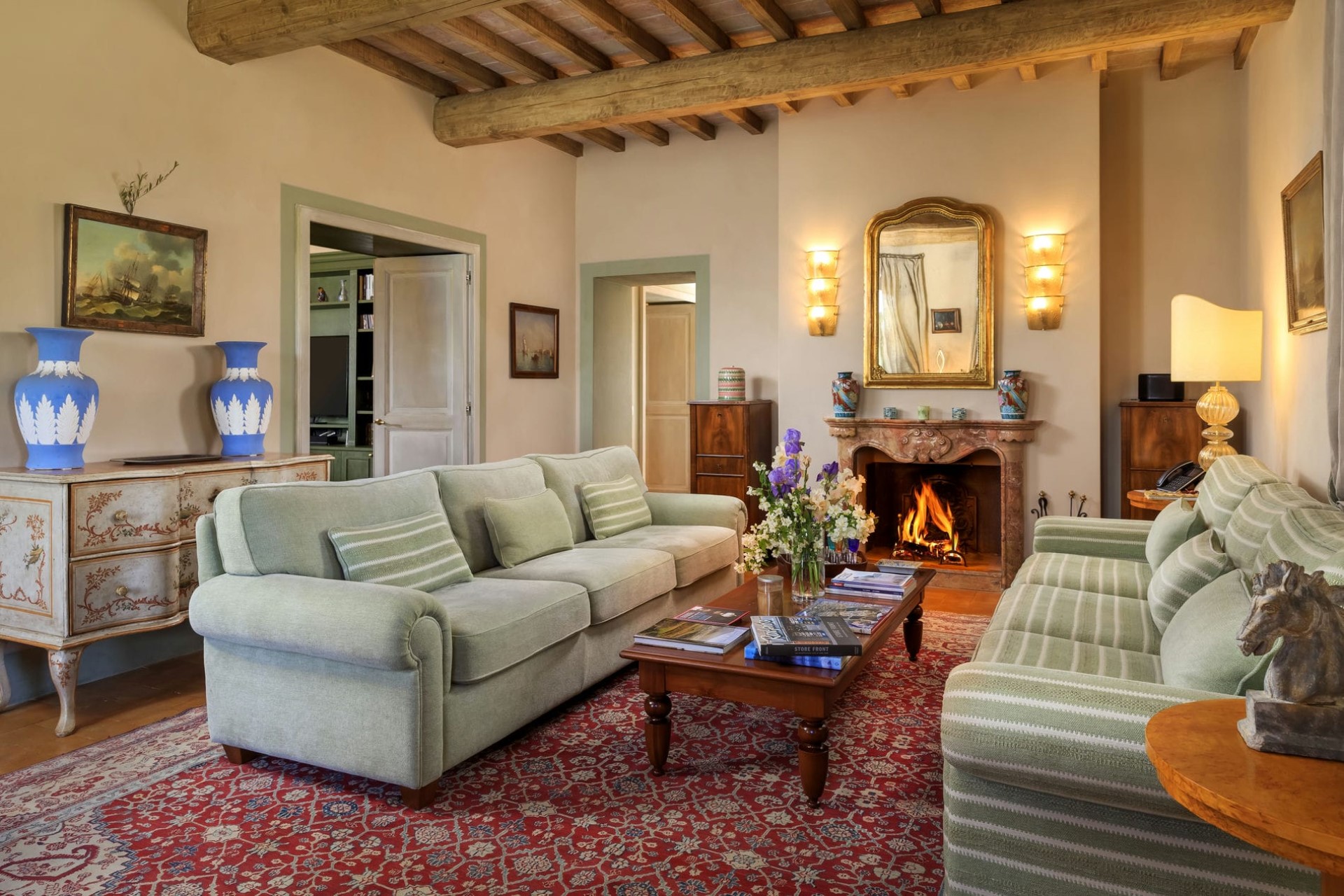The indoor living areas are spread across more than 6,000 square feet, beautifully decorated in classical local style. High, beamed ceilings create a feeling of space, whilst the use of Tuscan marble, hand-baked terracotta, and stunning Italian period furniture throughout creates a luxurious yet homely feel.