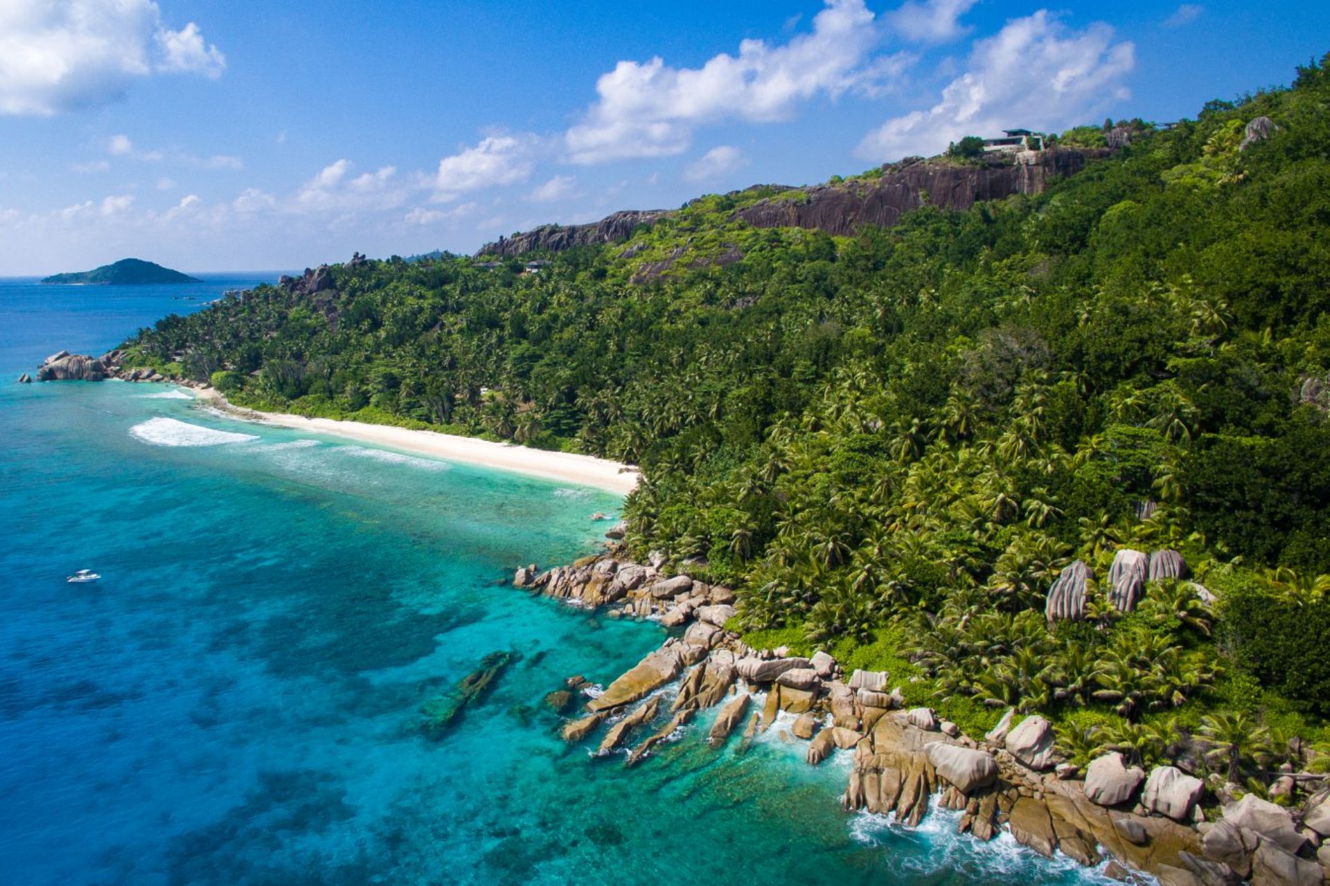 To get to the resort, visitors can take a scenic 20-minute helicopter flight from Mahé or a 20-minute speedboat trip from Praslin Island.