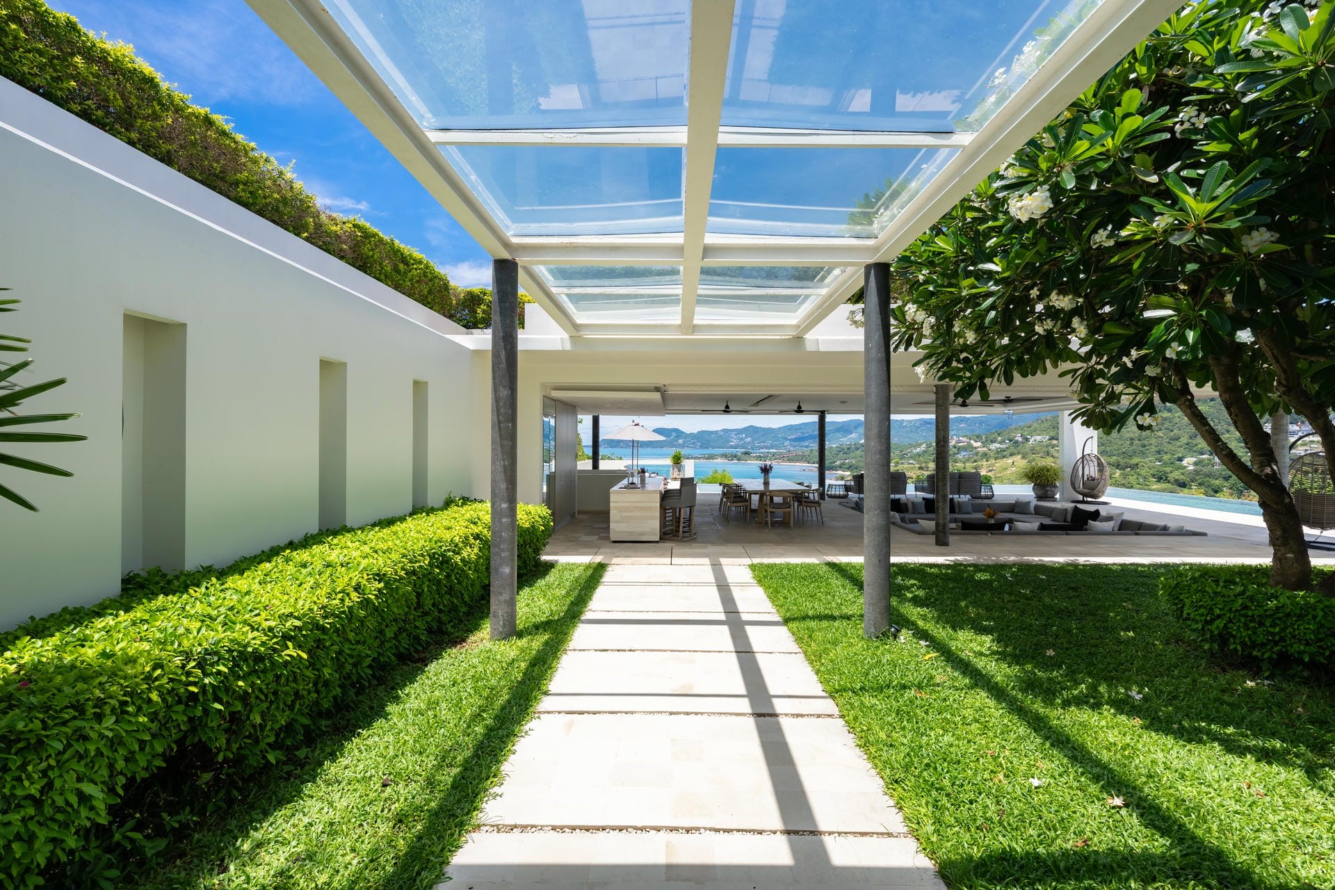 Additionally, the villa features a spacious interior garden, providing a tranquil space beneath fragrant frangipani trees.