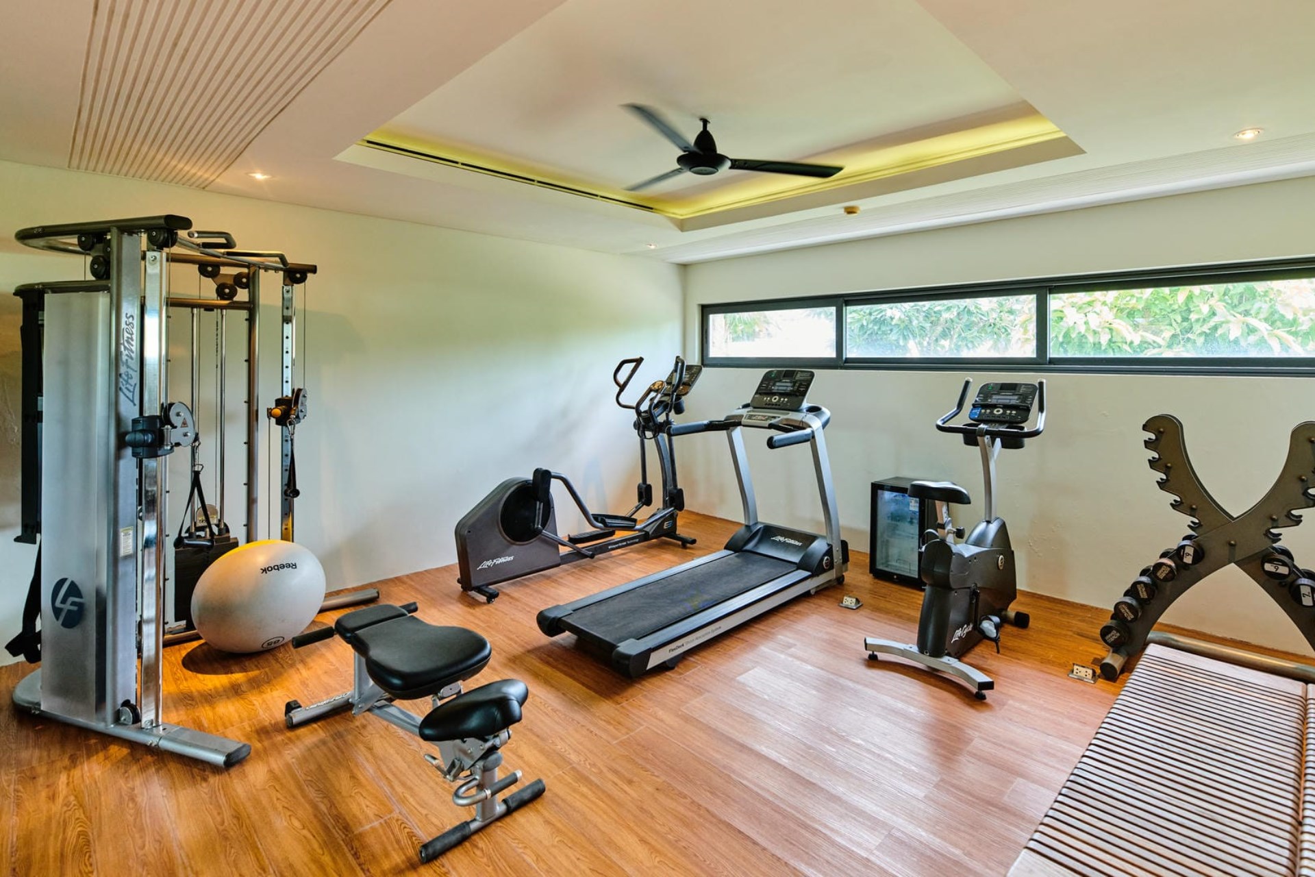 An indoor TV room ensures that guests of all ages remain entertained, while fitness enthusiasts will appreciate the villa’s private gym. Guests also have access to the Samujana Estate’s floodlit tennis court.