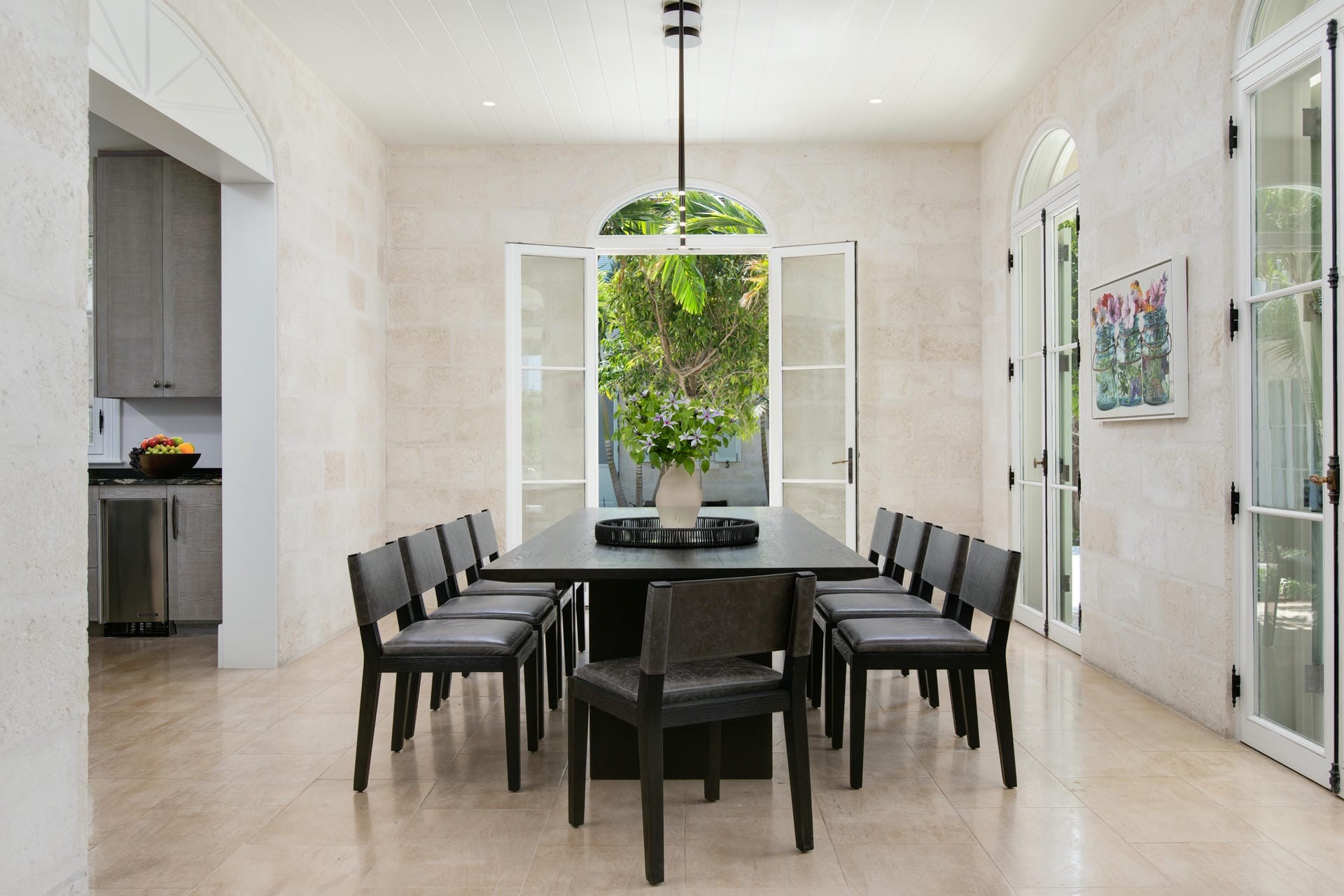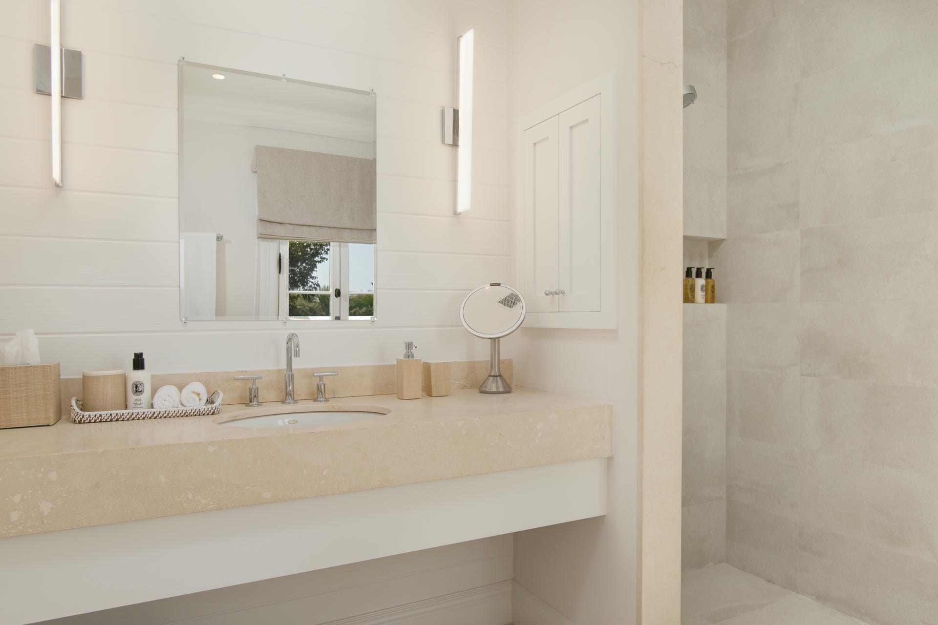 The villa’s interiors artfully marry classic West Indies charm with contemporary features. High vaulted ceilings, warm wood accents, and large windows create bright, airy spaces. The living and dining spaces are artfully designed to merge seamlessly with the outdoors, offering both comfort and elegance. A separate media room with a Smart TV and top-notch sound system is perfect for a family film night.