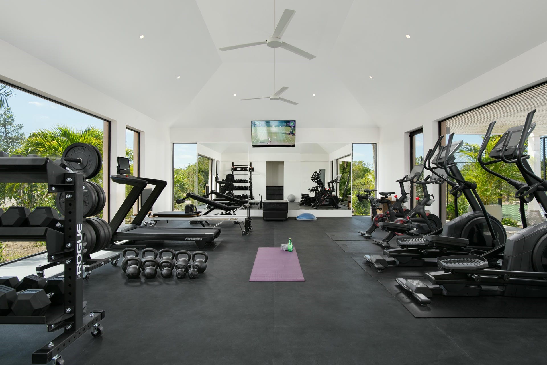 The private tennis, pickleball, bocce ball, and beach volleyball courts invite friendly competition, while the large outdoor playground is a paradise for children. Active guests can also enjoy a fully equipped gym complete with Peloton bikes and a Pilates reformer machine, as well as use the villa’s kayaks and stand up paddleboards to explore the crystal-clear waters of the island’s surrounding reef.