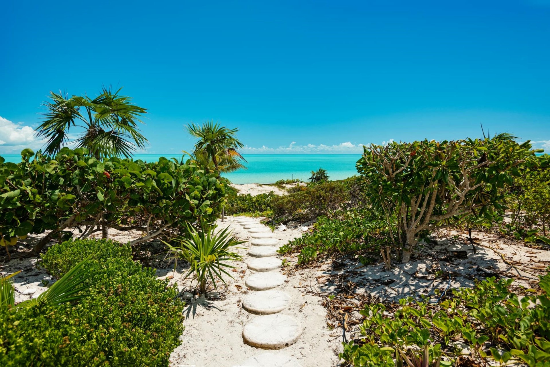Shambhala Villa enjoys an ideal placement on the untouched sands of Long Bay Beach, Providenciales in Turks and Caicos, a region famed for its clear, shallow turquoise sea and reliable trade winds. This picturesque section of coastline is a haven for those who love water activities, providing excellent opportunities for kite surfing, paddleboarding, and kayaking directly from the beachfront. The tranquil, shallow waters, which extend well into the ocean, make Long Bay a secure and beautiful locale for both novice and experienced water sports fans.