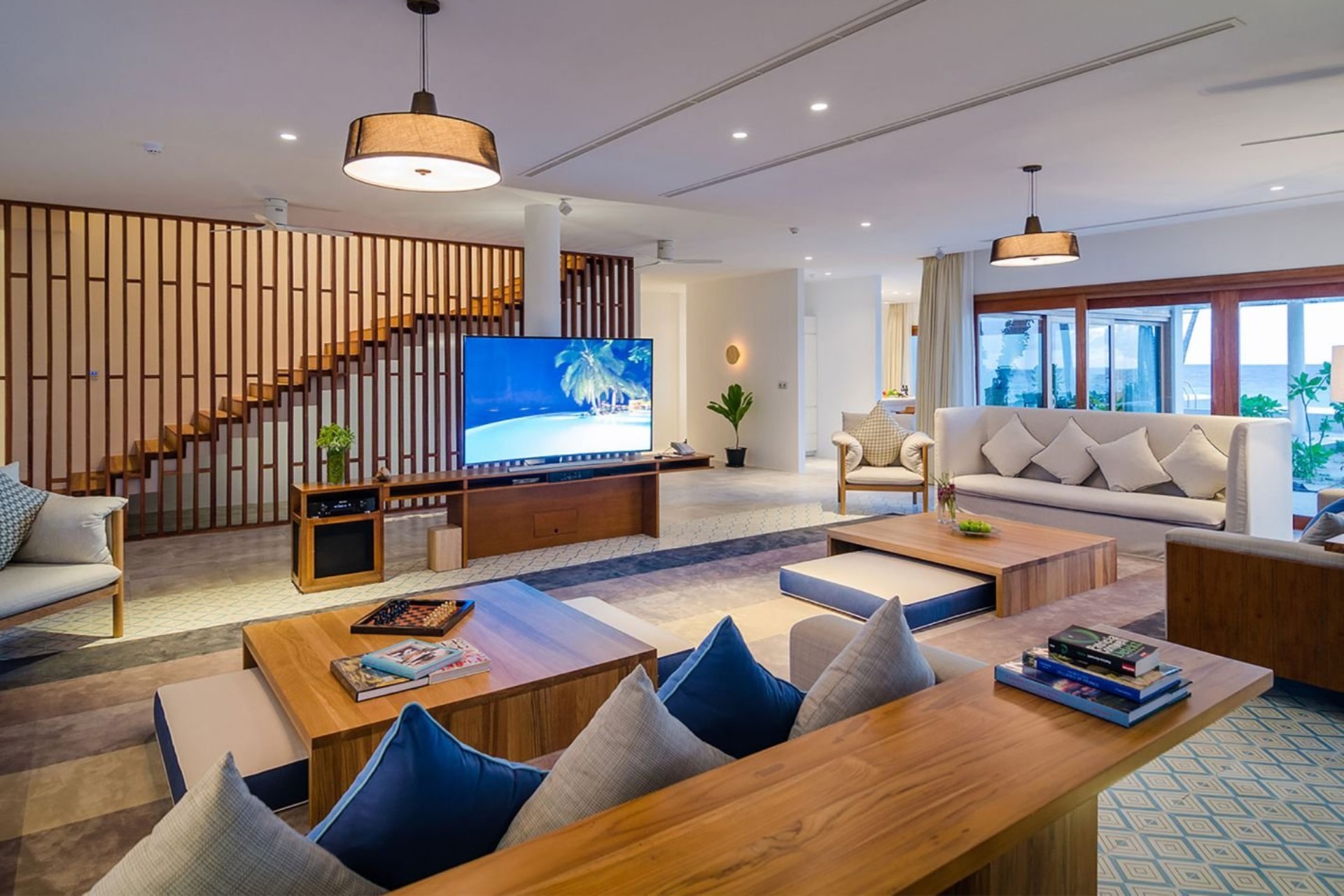 The Great Beach Villa Residence is located on the edge of the Baa Atoll, which is a biosphere protected by UNESCO World Heritage status. The villa sits right on the edge of the beach, and visitors need only head out a few metres to enjoy the magical reef below the waters.