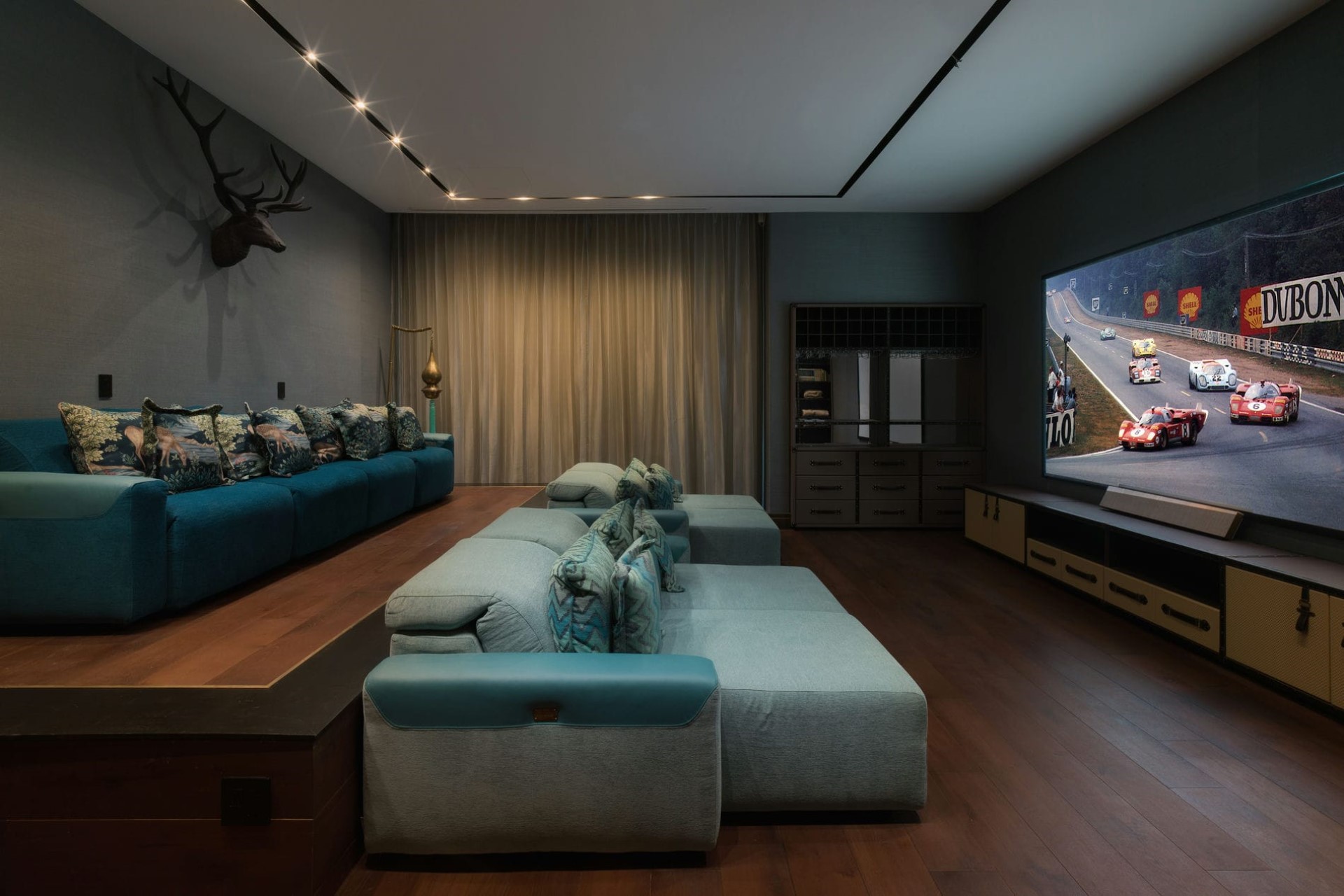 Downstairs, a cosy cinema room is perfect for family film nights, while a games room offers further entertainment with a pool table, card table and bar.