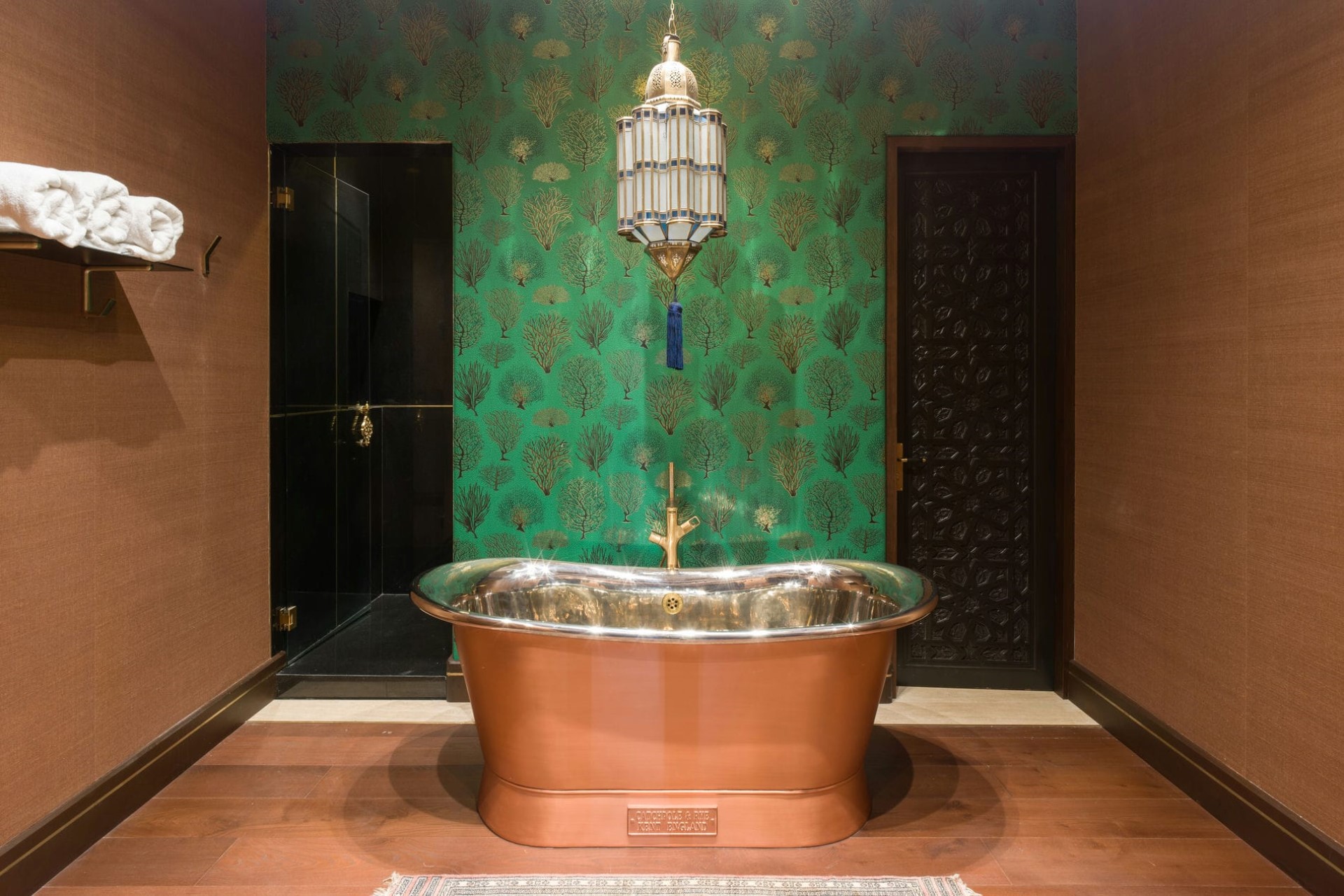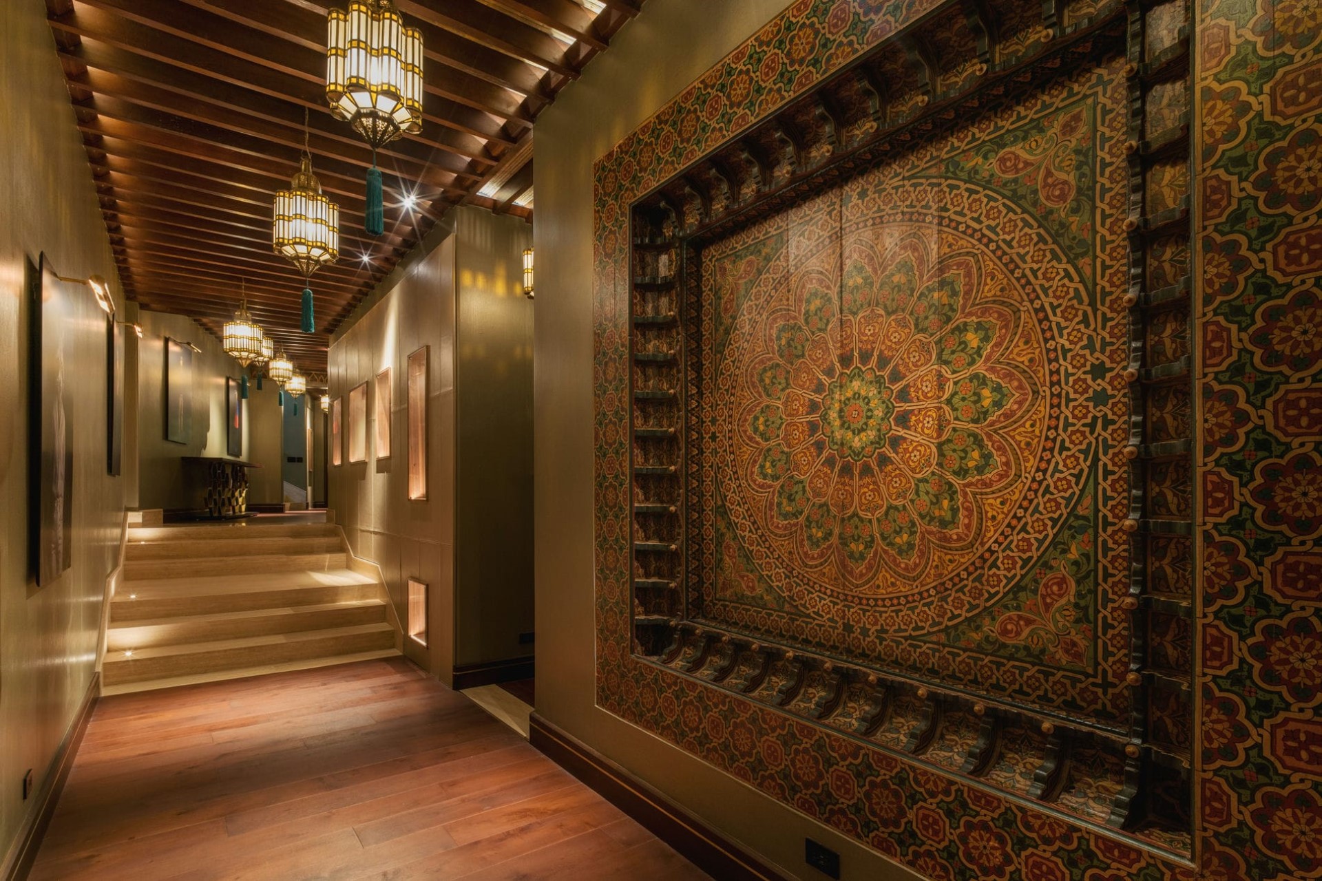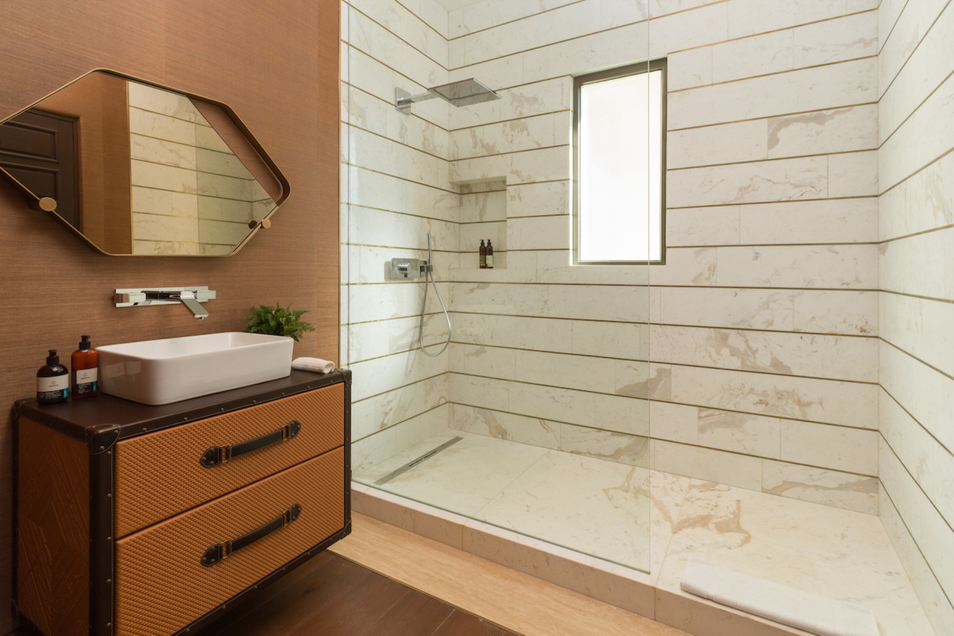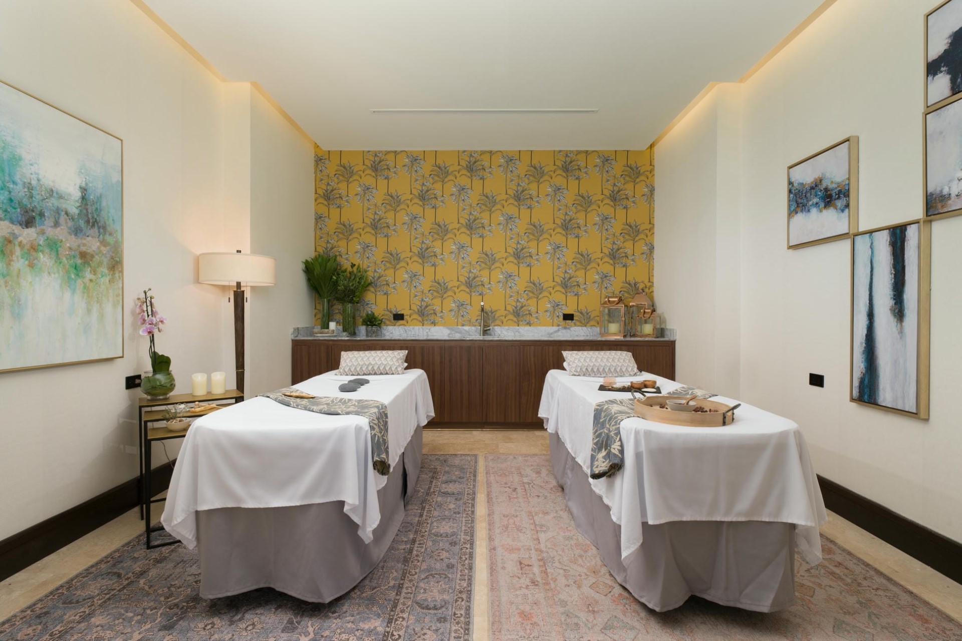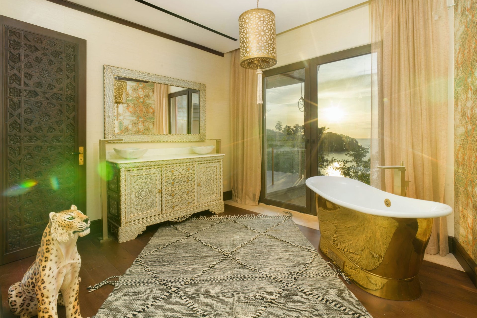 A fully-equipped gym features panoramic windows for a workout with a view. Post-workout, guests can make use of the villa’s private spa, complete with a hammam and relaxing treatment rooms.