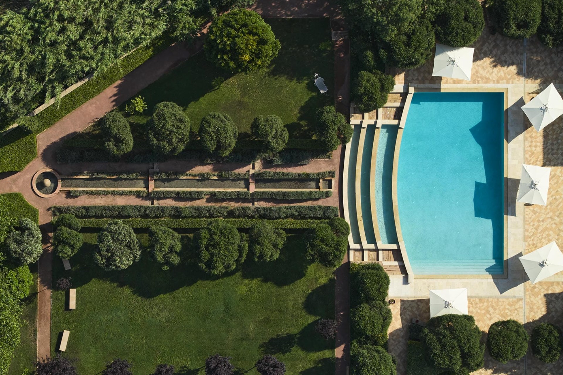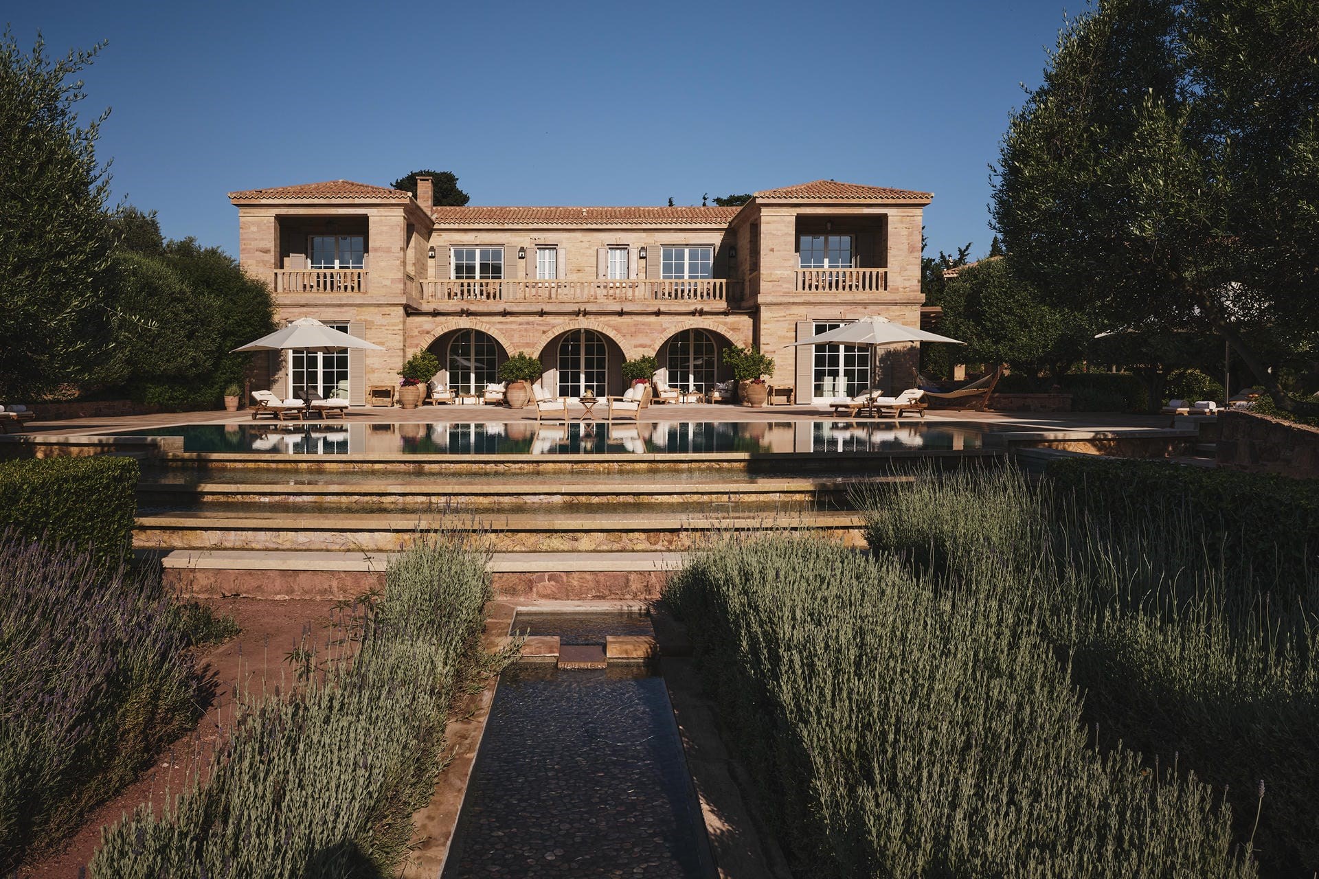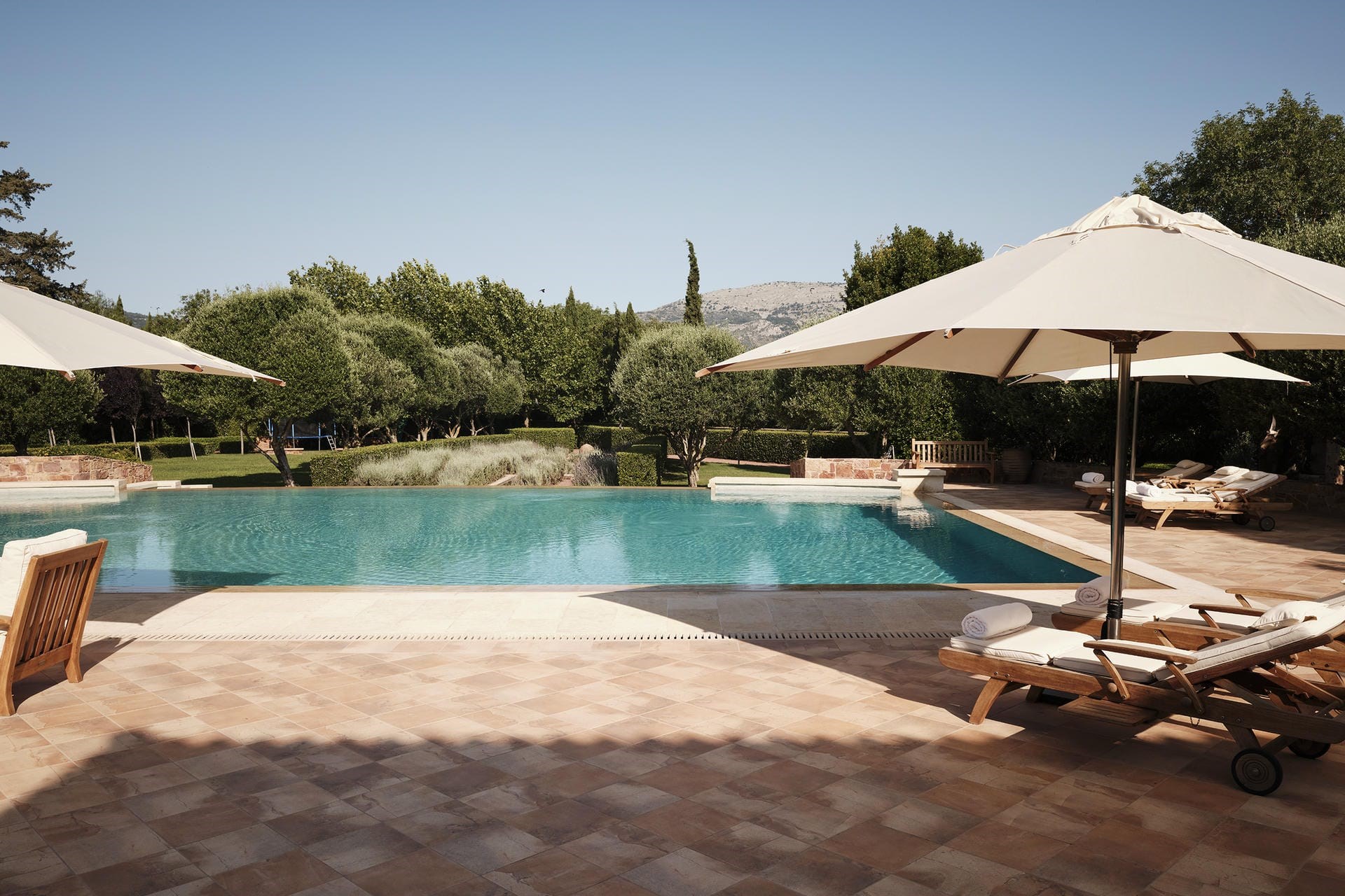 A rural luxury retreat with an outdoor pool surrounded by beautiful Grecian gardens